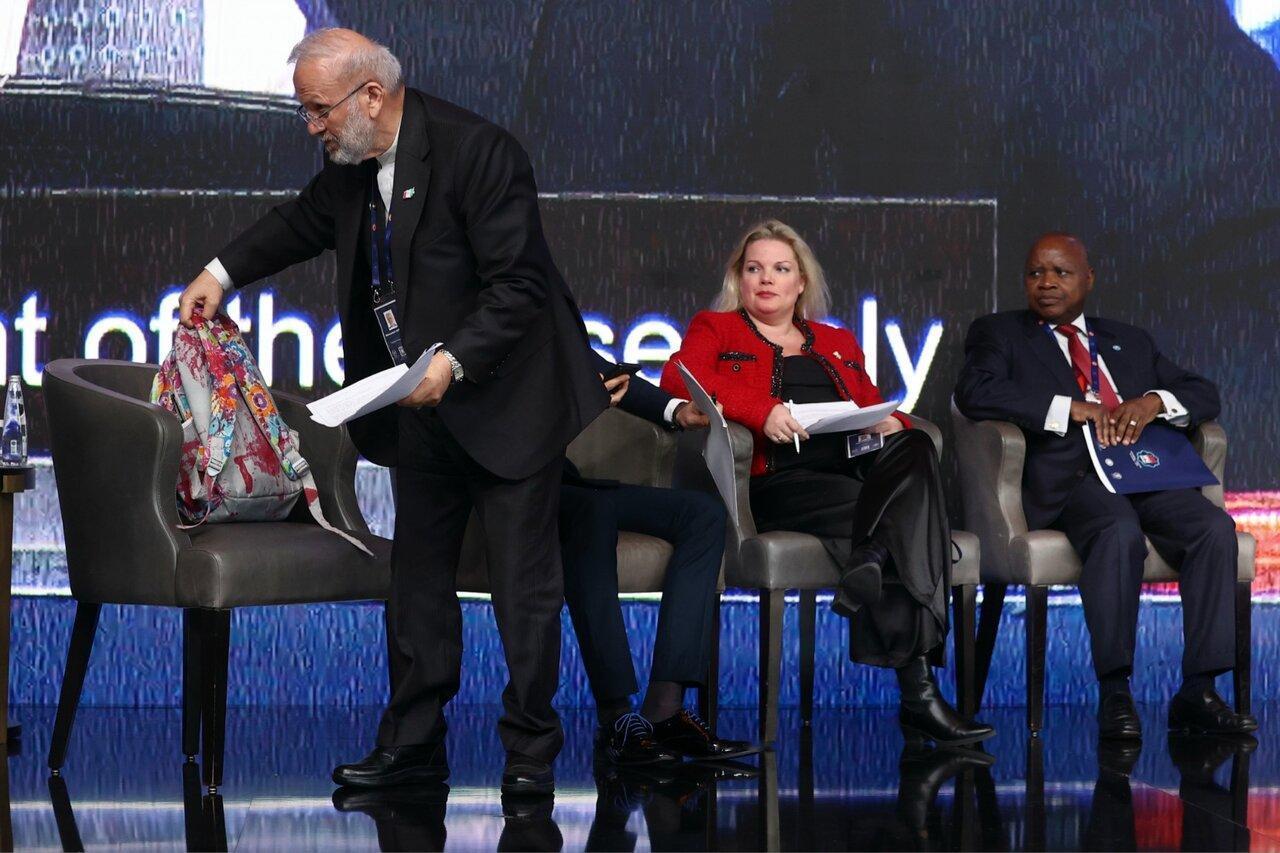 【伊朗前外交官举学童书包控诉美军滥杀平民】在巴林举行的亚洲议会大会上,伊朗前外长穆塔基(Manouchehr Mottaki)爆发了,作为应邀参会的嘉宾,他把参会舞台变成了对美国的控诉平台。