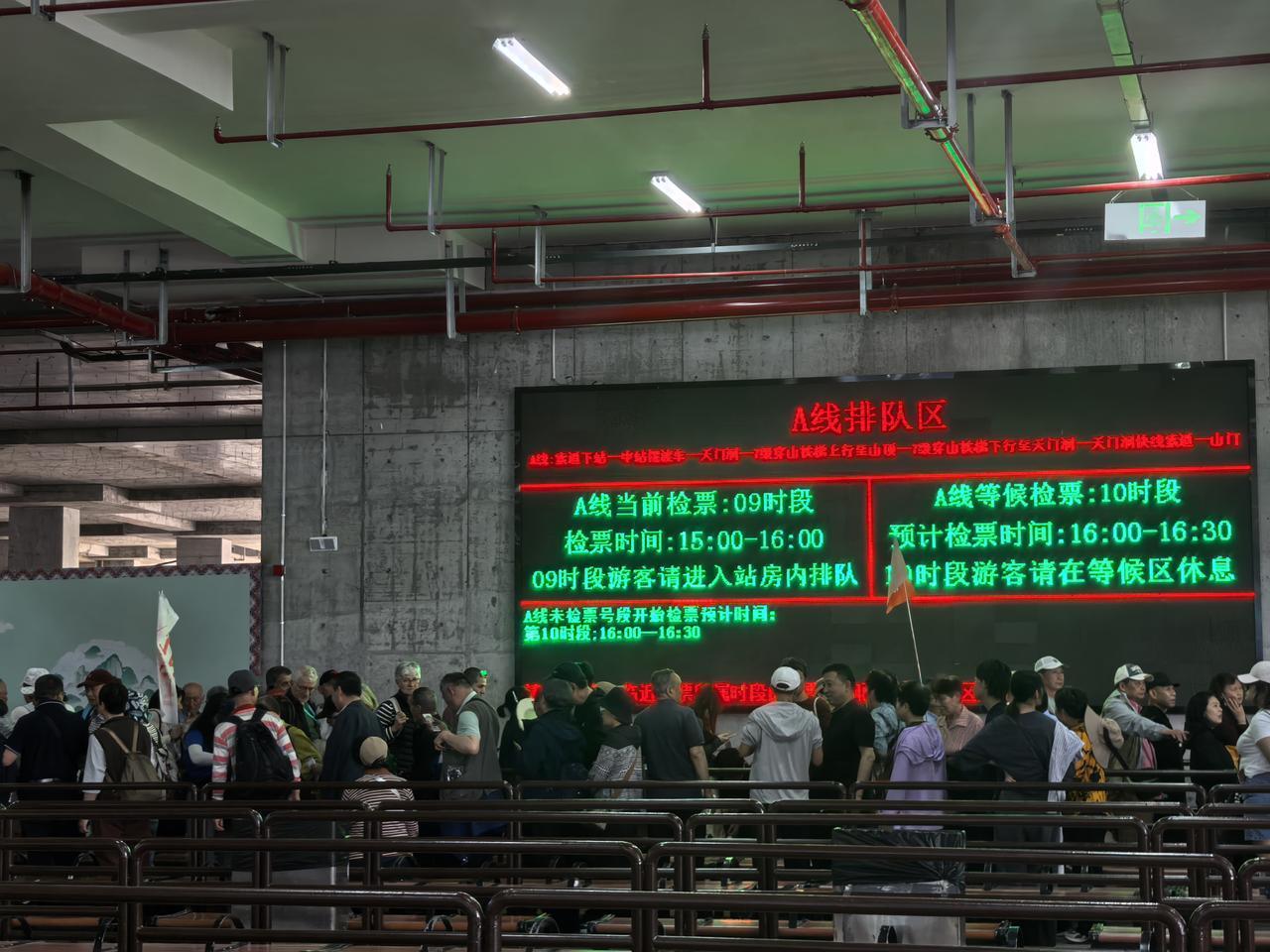 下午,在酒店住下后,就步行几分钟去了天门山索道下站,虽然是下午,排队几人依然很多,看来,张家界的旅游真的很火爆。从索道下站出来,便去汽车站问了一下去武陵源的车票,还好,每10分钟一趟,票价13元,自己就懒得开车了。顺便把武陵源的门票也买了,结果只有11---12点的票,只剩100多张。明后天就去武陵源,22号再去大门山。幸运的是,汽车站就在入住的酒店旁边。