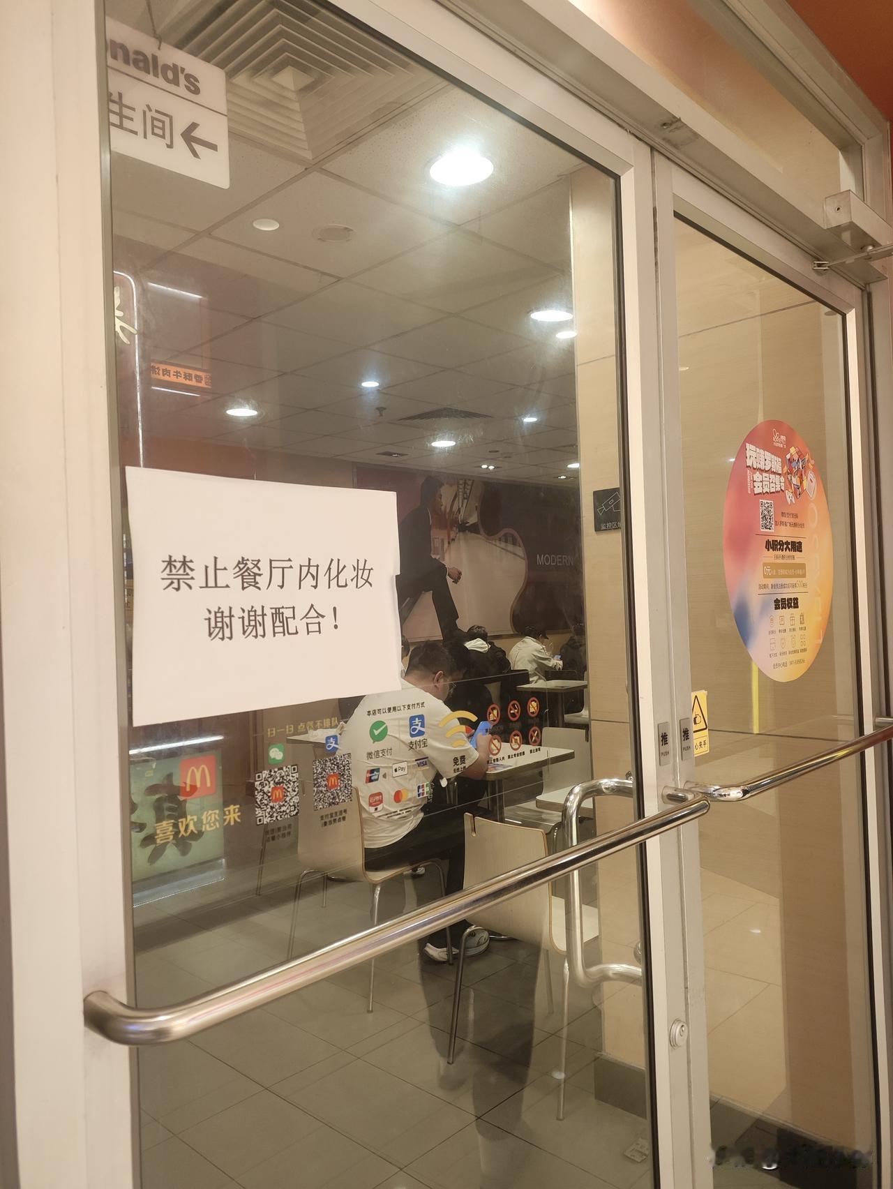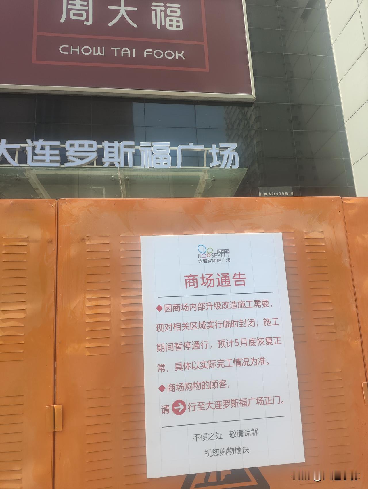 顺便一提: 紧邻旧址的罗斯福一个小侧门也在装修,围挡上写着 5月底重新开放。另外,罗斯福麦当劳门前贴了 “餐厅禁止化妆” 的告示,推测是附近玩Cosplay的人较多,商家为维护就餐环境而定。