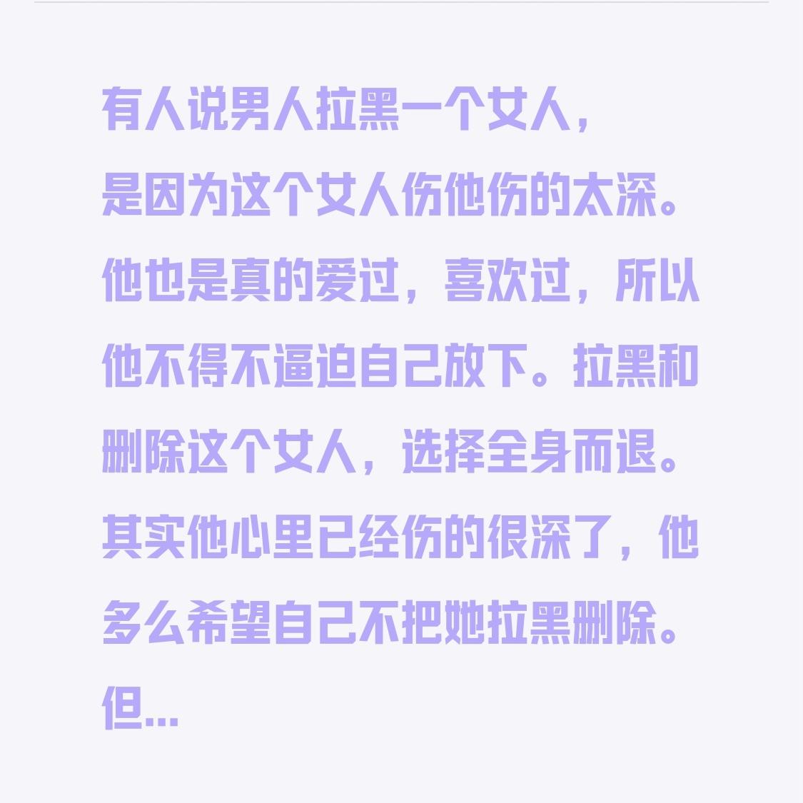 有人说男人拉黑一个女人,是因为这个女人伤他伤的太深。 他也是真的爱过,喜欢过,
