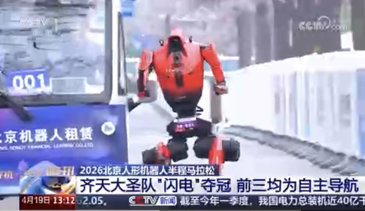 北京人形机器人半程马拉松赛事冠军正式出炉。齐天大圣队的“闪电”机器人以50分26秒的净用时摘得桂冠,雷霆闪电队、星火燎原队分获亚军与季军。