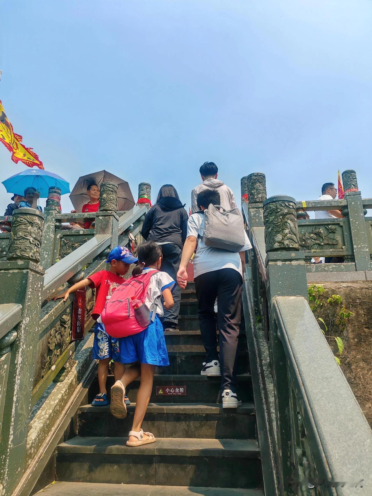 从玉蟾宫一侧绕到殿后是一个玉蟾雕刻和牌坊,牌坊后往上直达山顶,石阶由此变窄,到达山顶一平台,四周雕栏,环顾美丽田园,沃野千里。