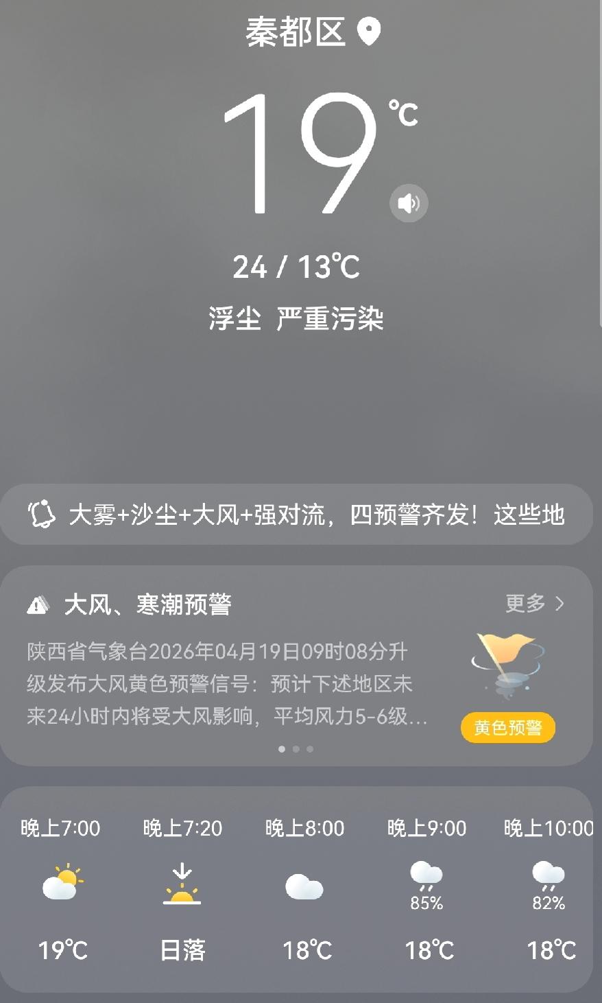 沙尘源自新疆、甘肃、内蒙古等地,由强冷空气卷起并输送至西安。再加上关中地区伴有4-5级西北风,阵风可达6-7级,加剧了扬尘。陕西省气象台发布沙尘暴黄色预警,预计浮尘或扬沙天气将持续到今天夜间。受此影响,今天西安周边的空气质量指数已达到严重污染级别,部分监测站PM10浓度很高,所以非必要尽量减少户外活动。