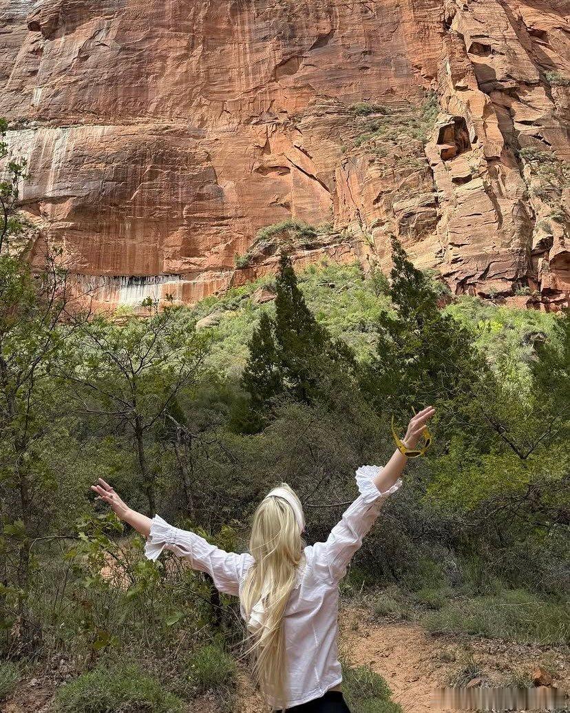安雅·泰勒-乔伊30岁生日游玩锡安国家公园的照片