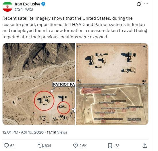 【美军紧急调整防空部署】 卫星图像显示,在加沙停火期间,美国悄然将部署在约旦的“
