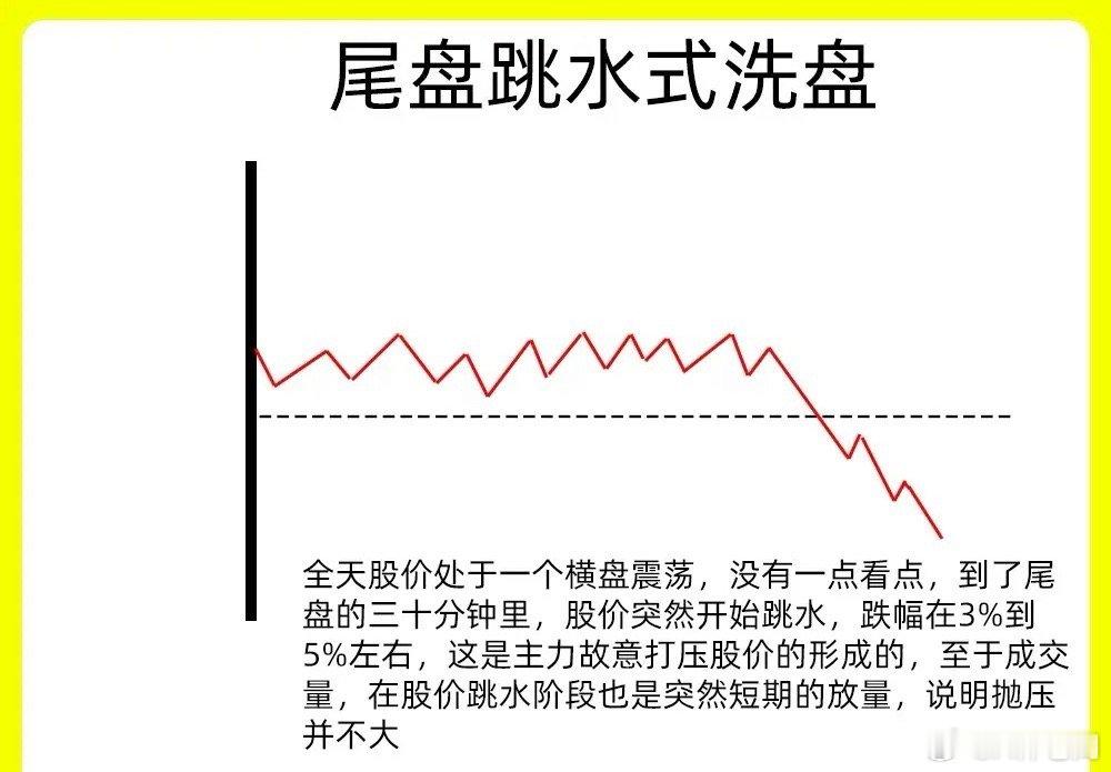 李小冉疑回应退出浪姐注意了!主力洗盘手法千千万,但是总是以磨人心态的方法,让散户交出筹码。所以主力洗盘就会有一个特点,那就是成交量会出现缩量,下方会有强支撑。不管是在日K线里还是在分时图里,你去复盘,就会发现他们的变化。今天我就分享五种分时洗盘的五种形态,来认证是不是这样的。还是老规矩,点赞收藏或评论六六六支持一下,我每天分享炒股干货,以免以后想温习找不到了一、V 形洗盘就是我们说深V反转,在分时里,盘中股价突然开始下跌,在几分钟里出现大幅下跌,跌幅会在3%以上。随后股价开始止跌反弹向上,成交量出现放大,突破了前期的高点,把深坑回填。就形成了一个V字形的走势。主力利用这种快跌快涨的方式,来清洗不坚定筹码。这是洗盘手法一般会出现上涨趋势的初期二、U 形洗盘在分时图里,股价早盘低位或是平台以后,股价开始缓慢走势,有种阴跌的走势,随后在低位股价横盘了几个小时,股价波动的越来越小,成交量也同步萎缩,等到尾盘阶段,股价有开始放量上涨,出现翻红的情况,就形成了一个U形底。U形底和V字形,时间和温和程度是不一样的,V字洗盘更直接三、横盘震荡洗盘也叫织布机走势,在分时图里,全天走势处于一个横盘震荡的过程,可能一分、两分之间的震荡。均价线基本处于一个持平的走势。这是主力想磨的筹码松动的表现,这种走势,散户是能有那么高的耐心的四、冲高回落型洗盘在分时图里,早盘出现放量冲高,速度很快,但是股价没有出现涨停,随后股价开始回调,成交量出现缩量,整个下跌过程里,股价都没有跌破开盘价,等到了尾盘阶段,股价才出现微微上涨的趋势。其实这是主力洗盘手法,也是为了测试上方的抛压。五、尾盘跳水式洗盘全天走势平平,到了尾盘的时候突然开始砸盘,股价出现跳水,尤其是最后的10分钟里。次日如果出现高开,把跳水阶段收回来,说明这是主力在洗盘好了!以上就主力洗盘的五种分时手法,下方我准备了五种案例图,建议认真看完。希望对大家有启发,也是最为基础的内容,一定吃透。我们下期内容再见如何看懂股票K线图主力洗盘手法揭秘主力洗盘股票操盘手法洗盘战术主力控盘套路