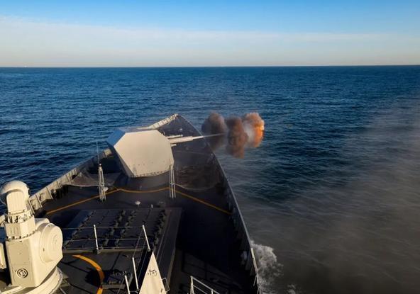 指挥员下达射击口令后,主炮、岸导兵力及导弹快艇协同打击,成功摧毁目标。训练全程突出临机导调,构设复杂战场环境,穿插车舵“故障”、舰艇“破损进水”等特情处置考核,检验了指挥员临机决策与编队协同作战能力。