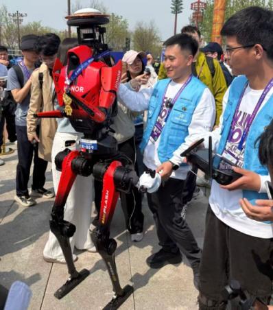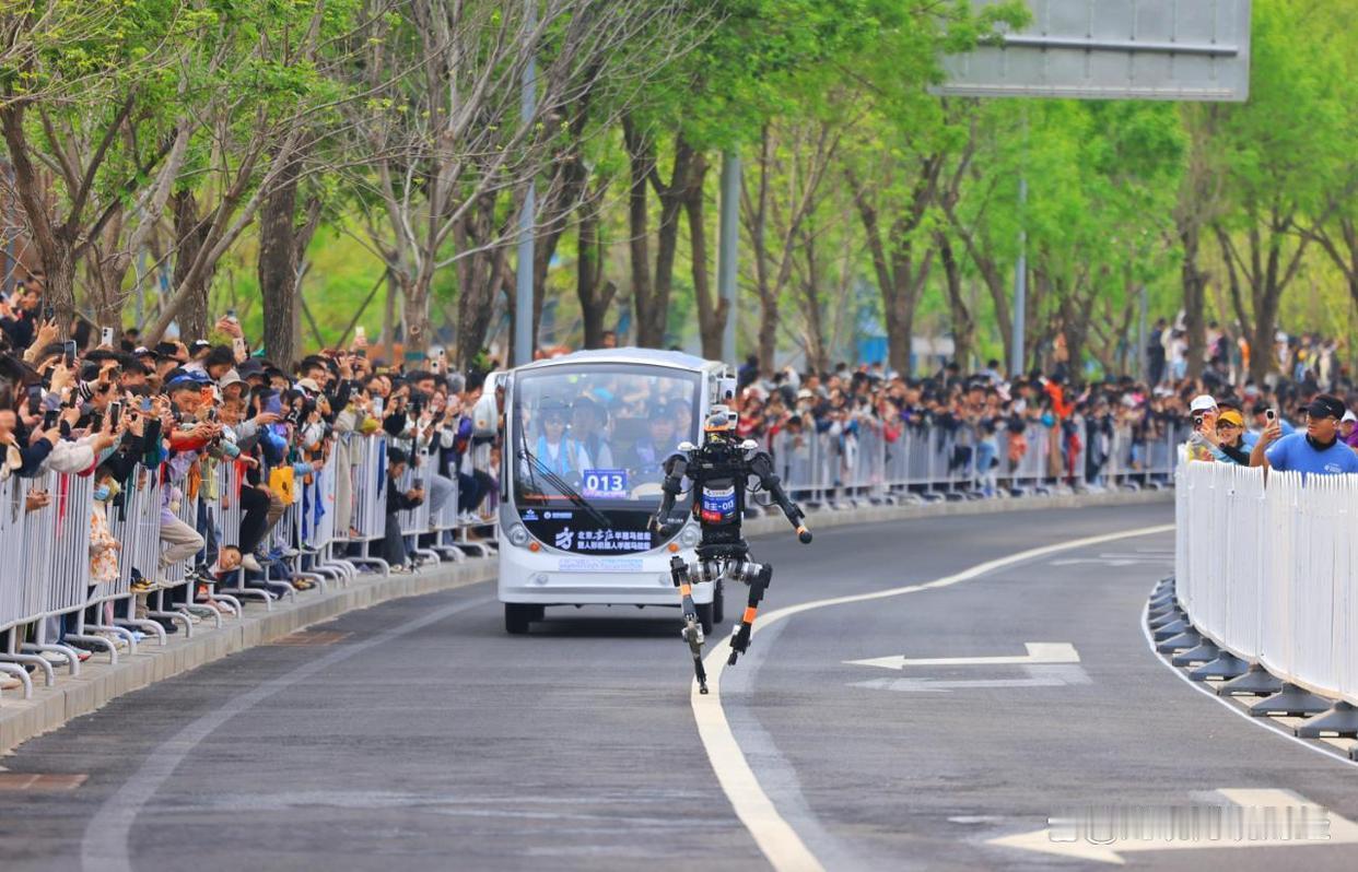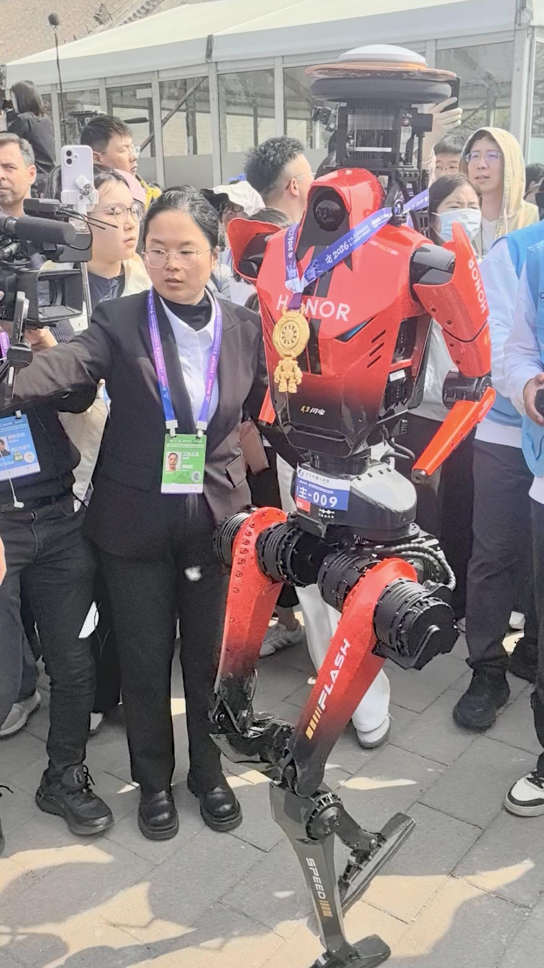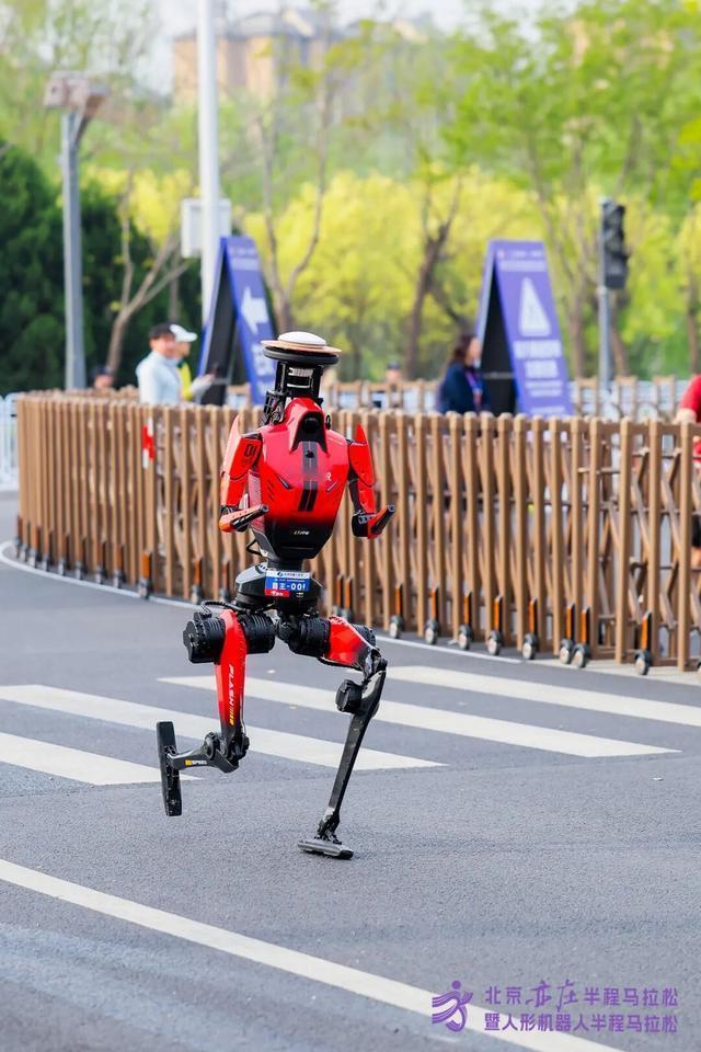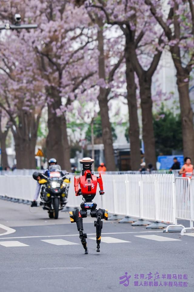 美媒:中国智能手机制造商荣耀开发的人形机器人"闪电"在北京半程马拉松赛中以50分