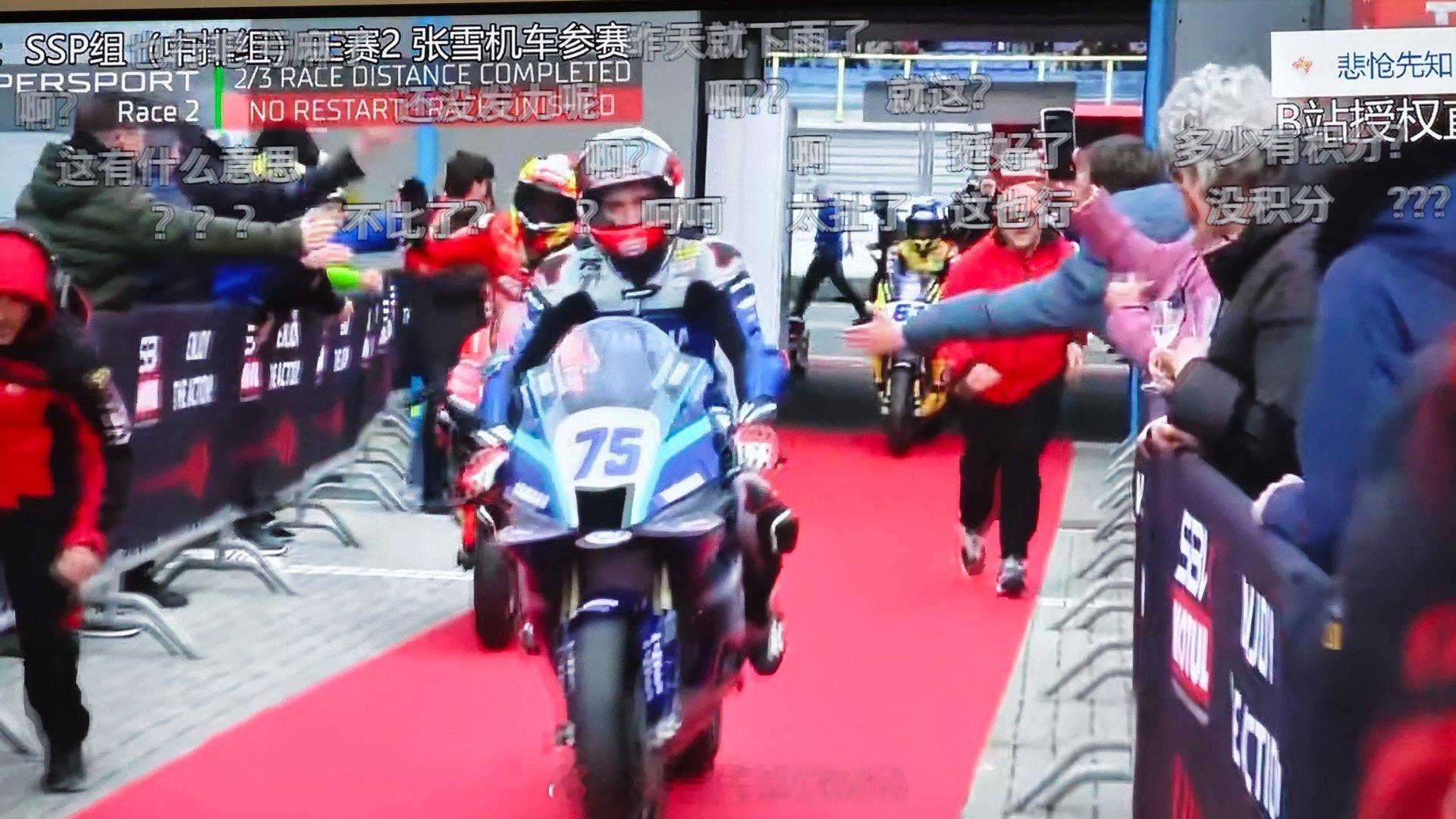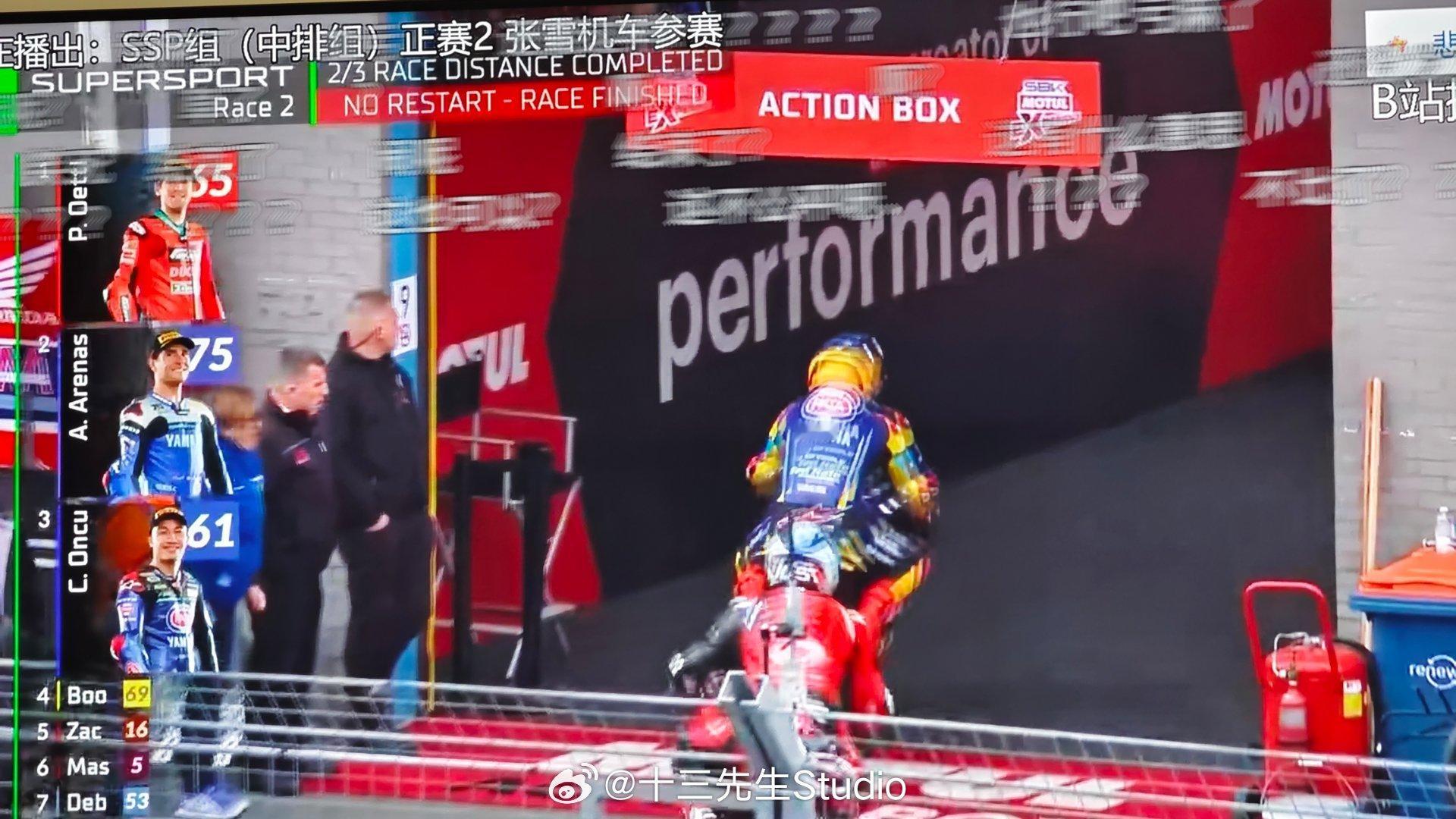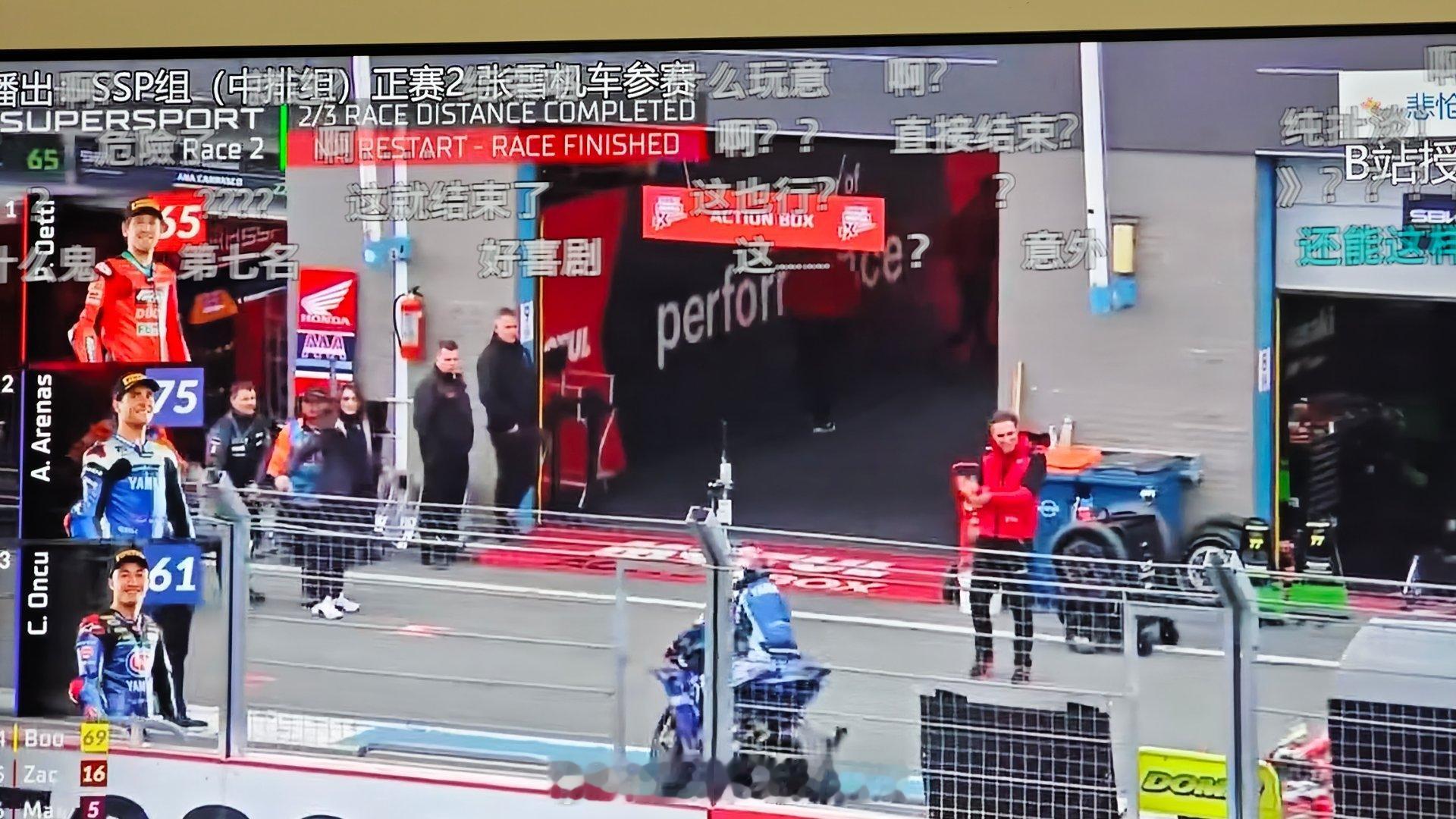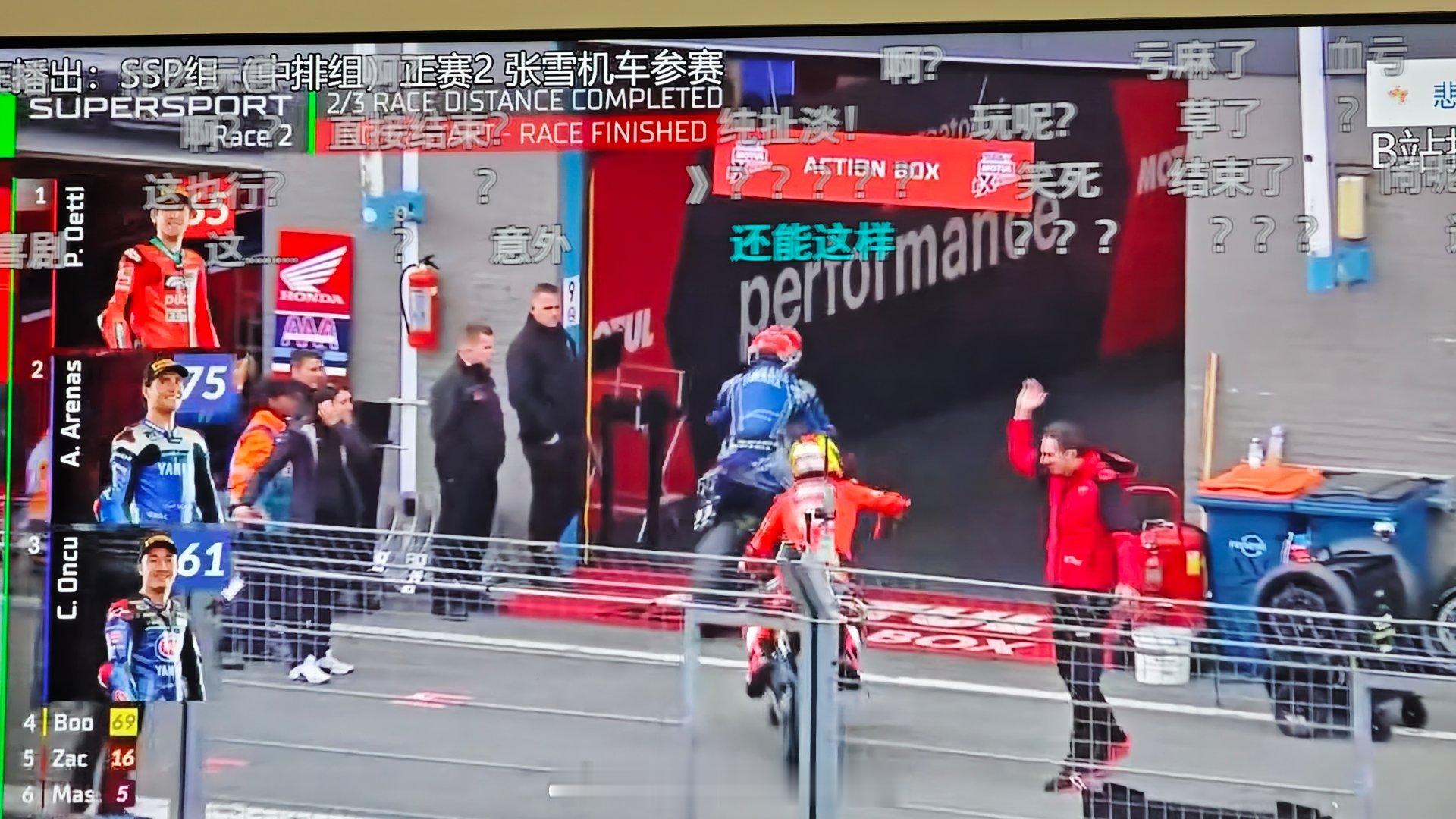 啊?还有6圈结束红旗就直接结束了,张雪机车的53号选手德比斯第7结束,感觉前面在