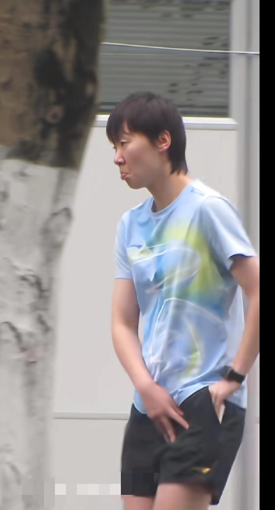 一身浅蓝色训练T恤出镜,走路时嘴巴不自觉嘟着,奶呼呼的样子也太可爱了~