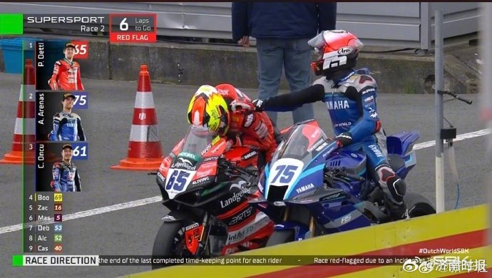 【#张雪机车回应比赛提前结束#】4月19日,在世界超级摩托车锦标赛(WSBK)2026荷兰站第二回合正赛中,因比赛突然插上红旗,提前结束,中国摩托车品牌张雪机车的53号车手瓦伦丁·德比斯驾驶820RR-RS,夺得第七名成绩。回应遇到比赛提前结束情况:当已跑圈数大于等于总圈数三分之二时,场上出现红旗,则比赛提前结束。并晒出战报:53号瓦伦丁·德比斯正赛第二回合第7。#张雪机车#