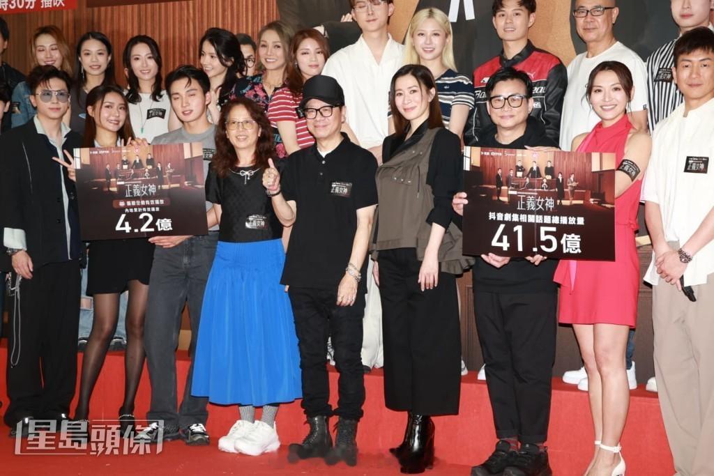 佘诗曼、陈炜、周嘉洛、戴祖仪、黄庭锋、蒋祖曼、马贯东等19日到钻石山宣传剧集《正义女神》,吸引大批市民围观。活动上宣布剧集跨平台总收视达21.2点,为今年年度剧集收视冠军,内地累计有效播放量更达4.2亿。