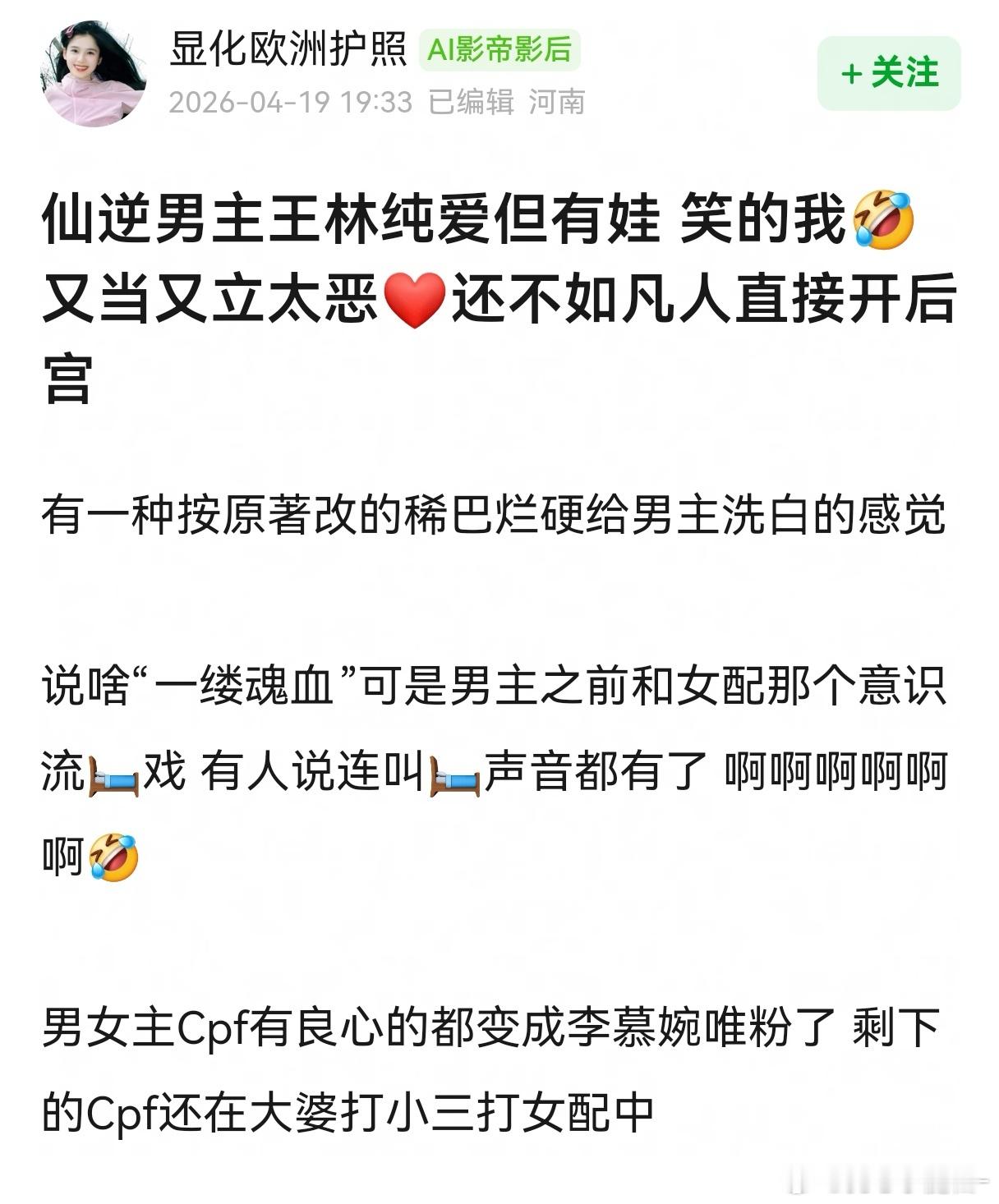 仙逆王林生儿子了,不过他自己“生”的纯爱有娃 CP纯爱党不满意。维护王林人设又不