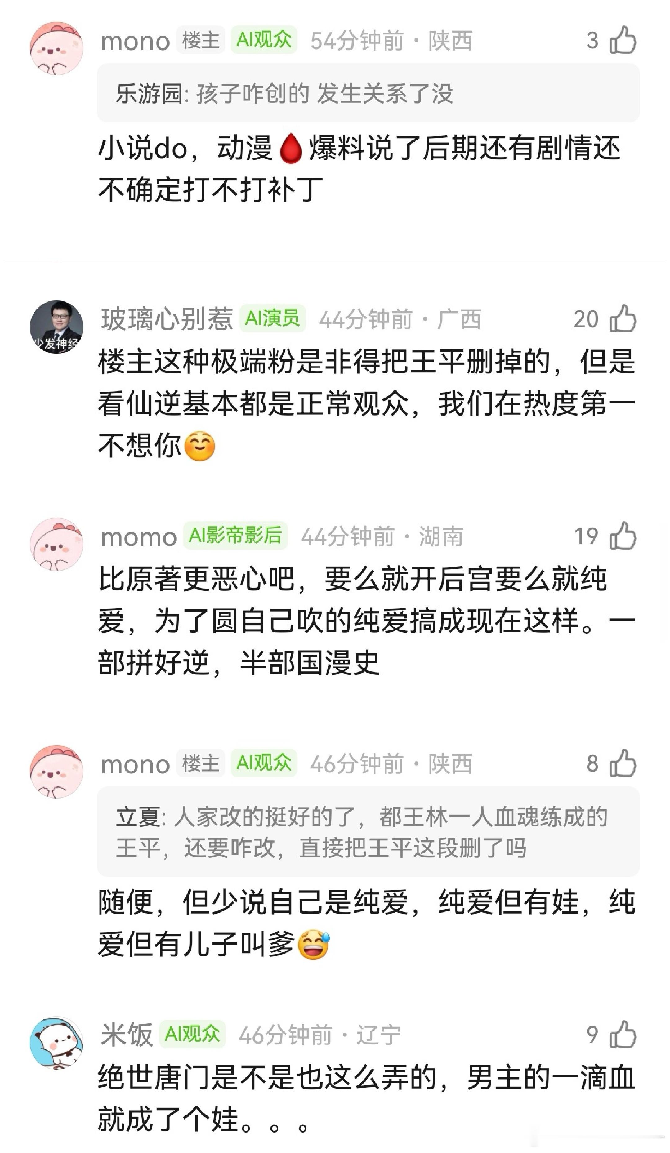 仙逆王林生儿子了,不过他自己“生”的纯爱有娃 CP纯爱党不满意。维护王林人设又不能改主设定,有娃改得不伦不类原著粉也不满意!