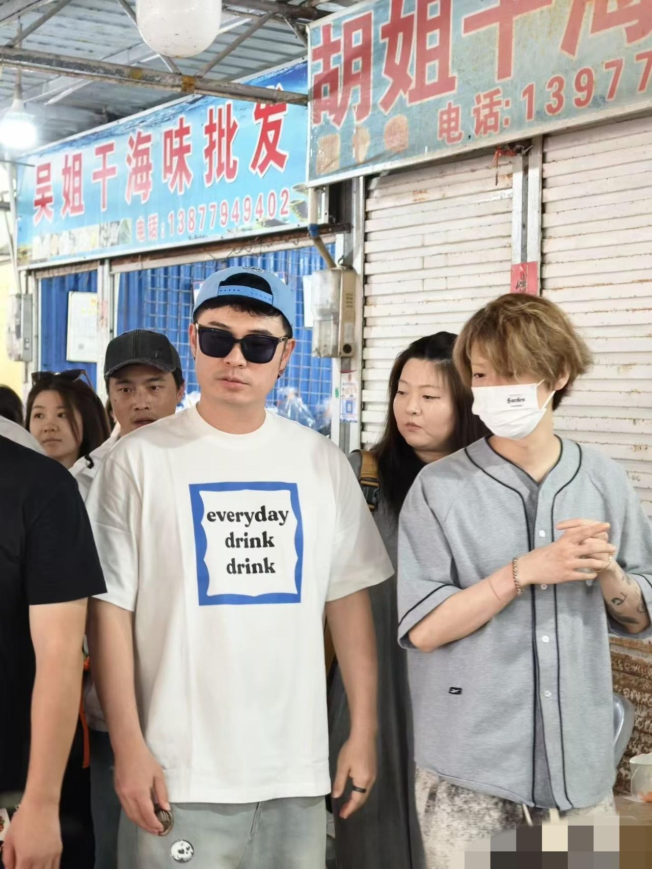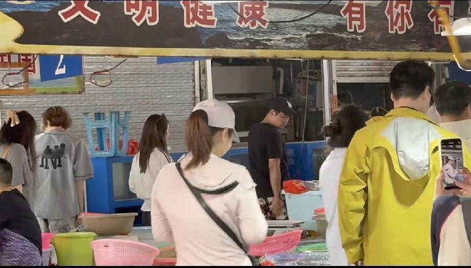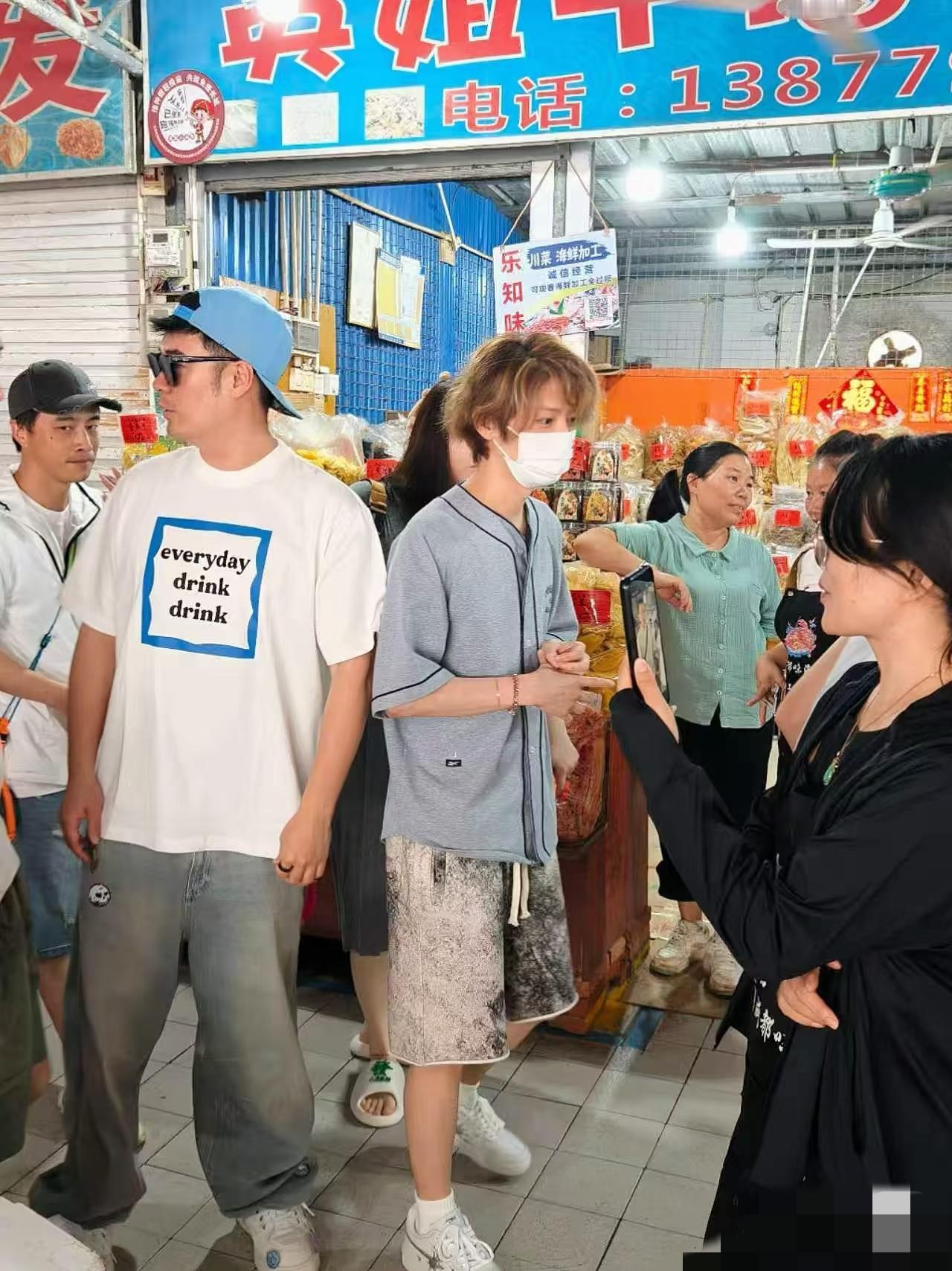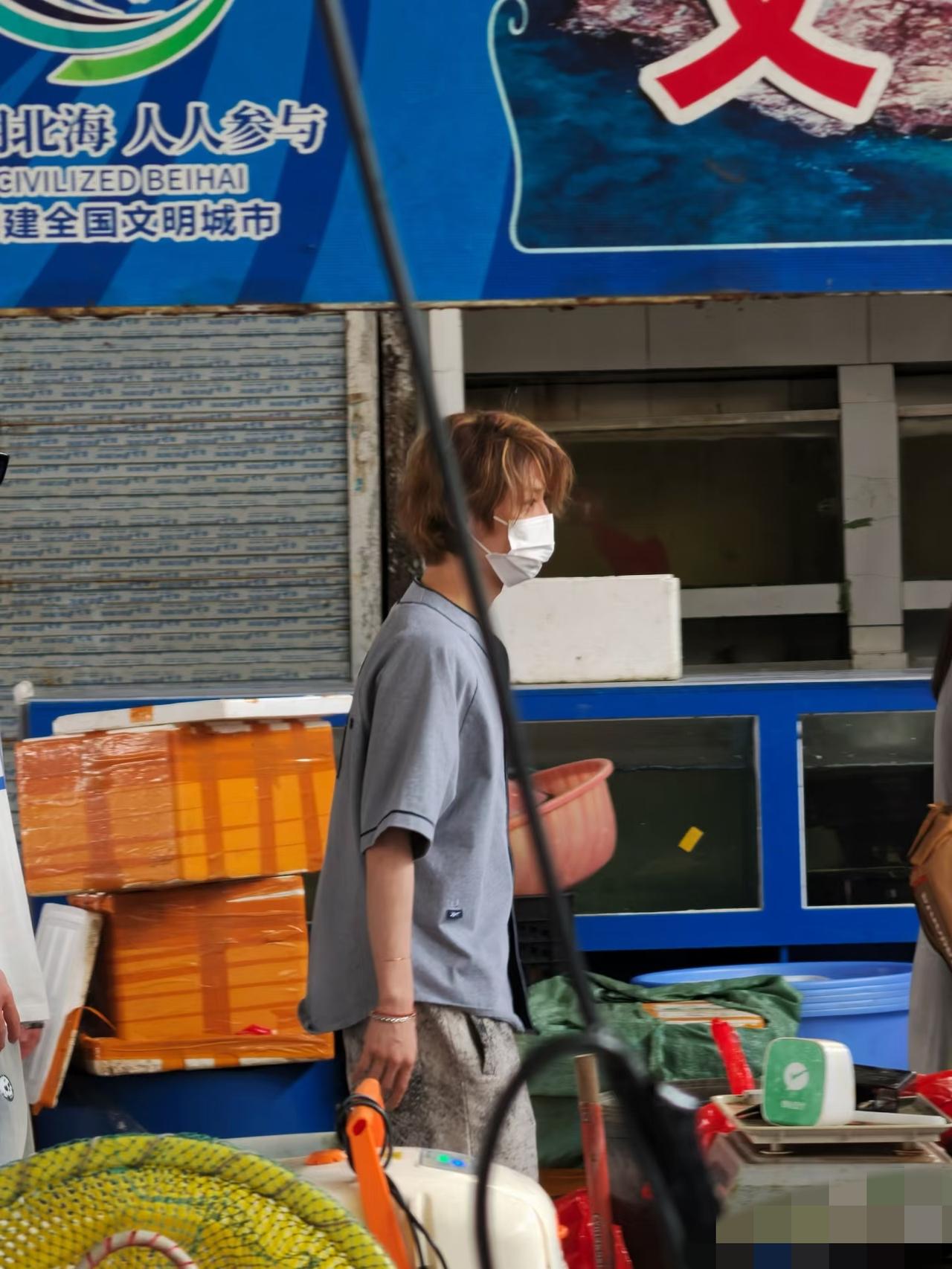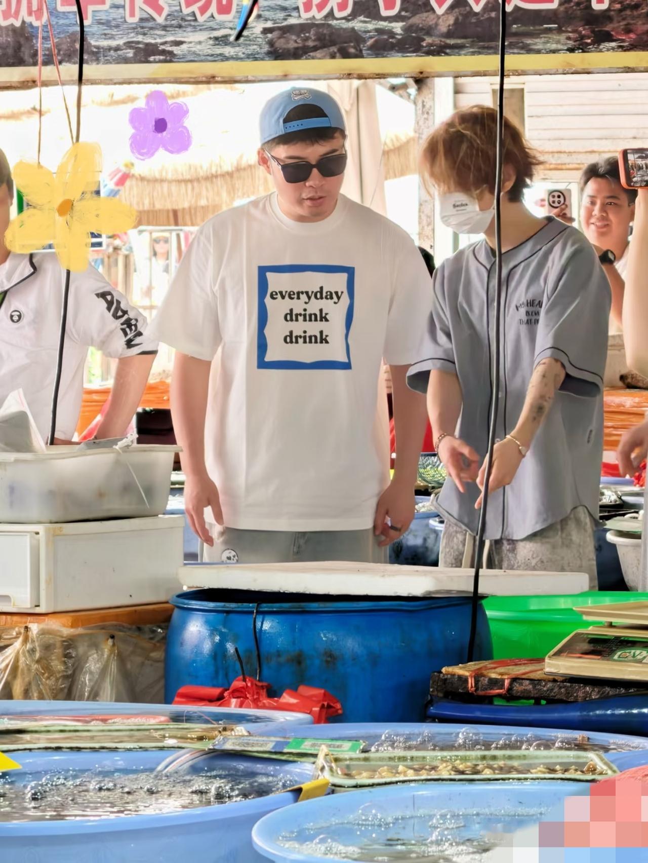 鹿晗与陈赫紧挨着站在一起买海鲜,鹿晗的身板看着像是只有陈赫的一半似的,这也太瘦了吧。