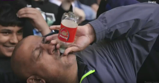 英超第32轮曼城对阵切尔西的比赛中,转播镜头拍到一名曼城球迷手持印有阿森纳队徽的水瓶,并做出喝水动作。这个镜头让他在网上一炮而红。