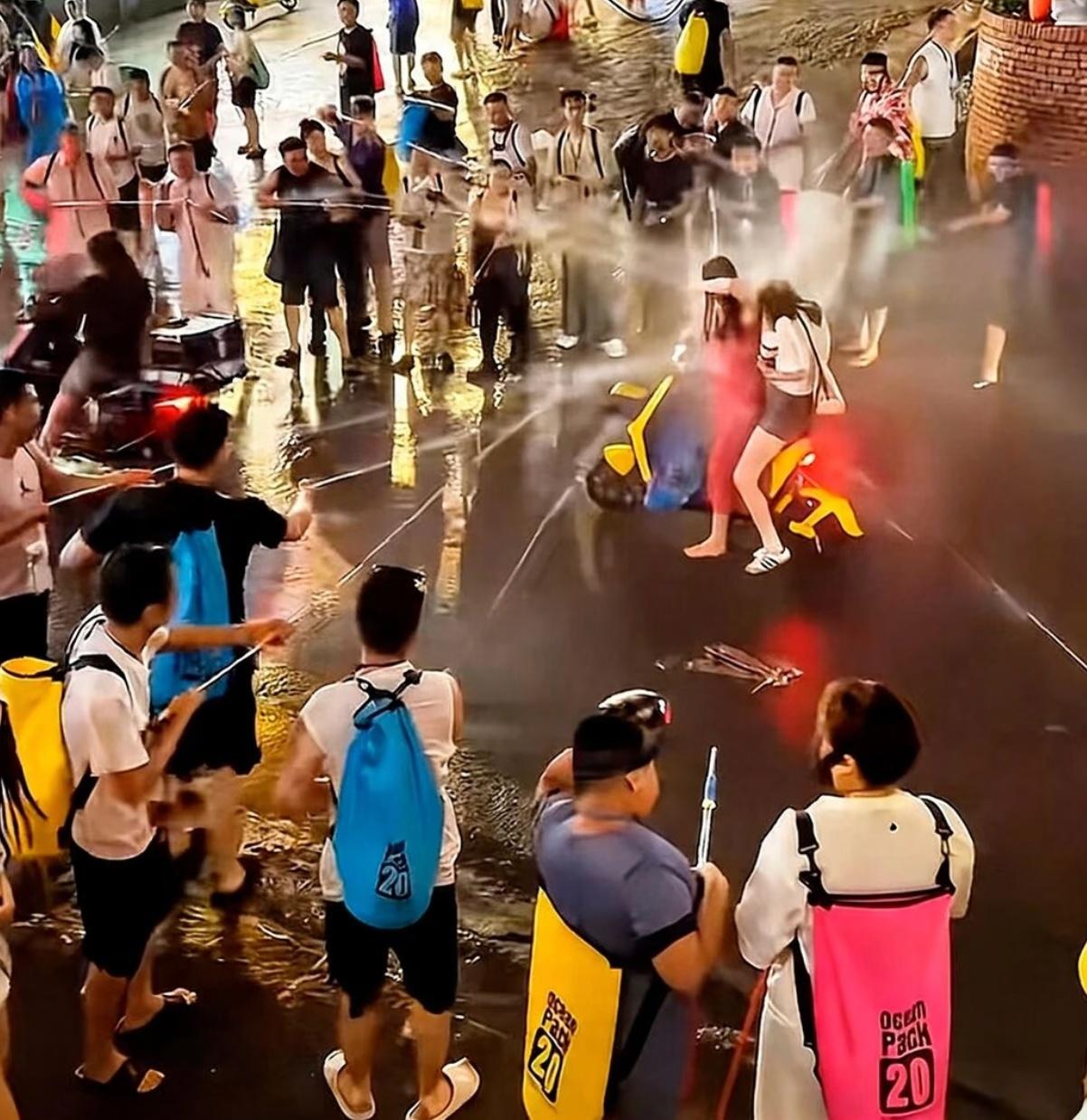 好好的泼水节怎么搞成这样子呢!各种奇怪的装备纷纷上场,“高压水枪”几乎成了标配,