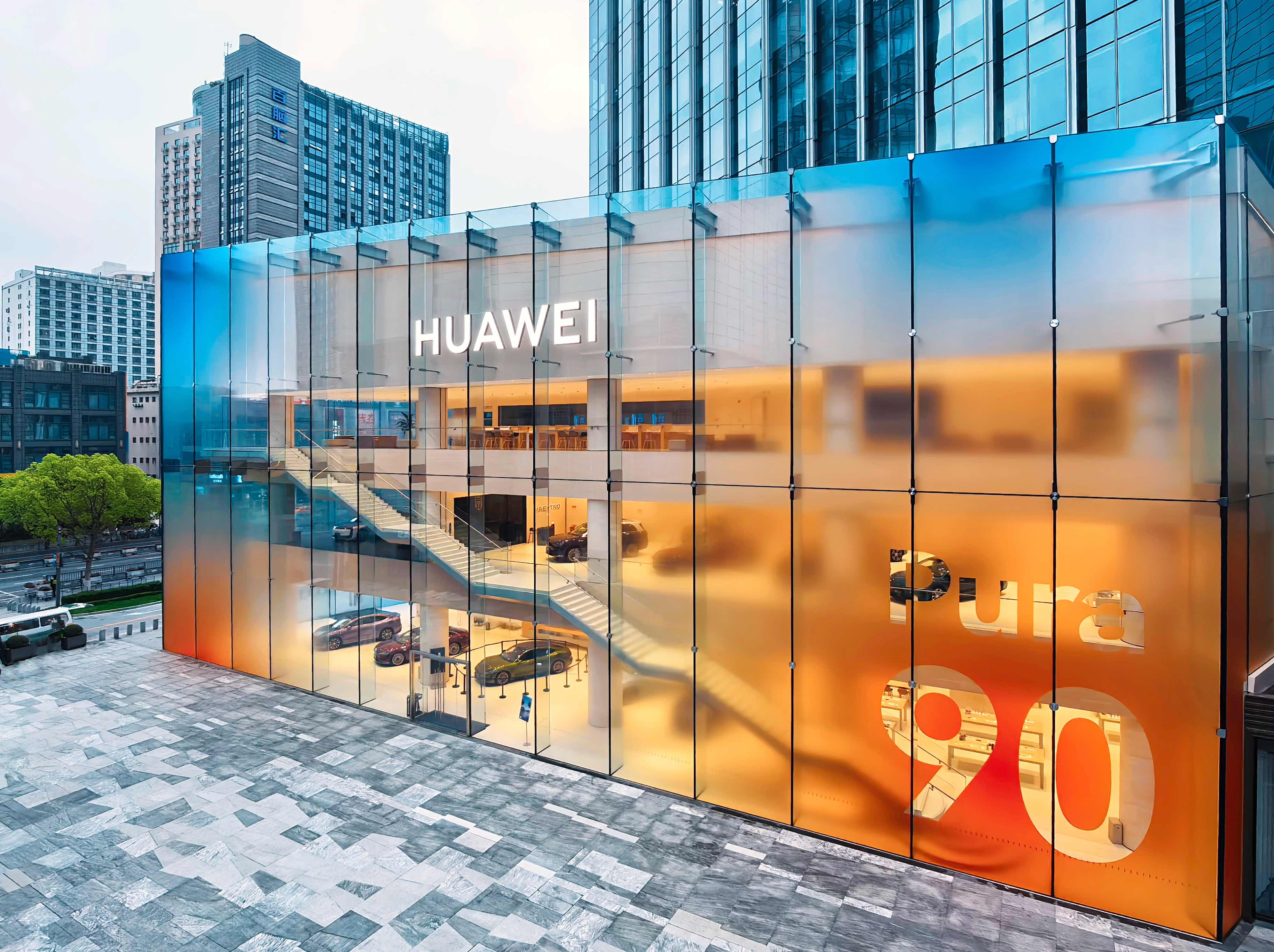 华为Pura系列新品发布苏州万象天地生活馆的橘子海新皮肤被围观,成为当地视觉焦点