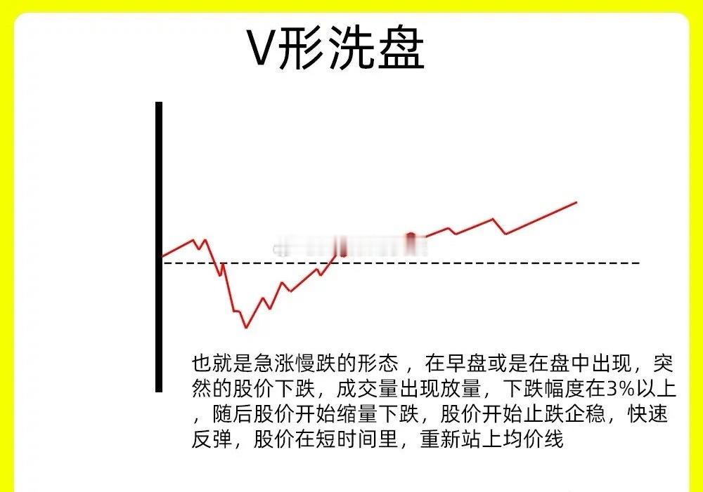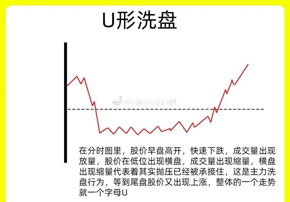 注意了!主力洗盘手法千千万,但是总是以磨人心态的方法,让散户交出筹码。所以主力洗盘就会有一个特点,那就是成交量会出现缩量,下方会有强支撑。不管是在日K线里还是在分时图里,你去复盘,就会发现他们的变化。今天我就分享五种分时洗盘的五种形态,来认证是不是这样的。还是老规矩,点赞收藏或评论六六六支持一下,女侠每天分享炒股干货,以免以后想温习找不到了一、V 形洗盘就是我们说深V反转,在分时里,盘中股价突然开始下跌,在几分钟里出现大幅下跌,跌幅会在3%以上。随后股价开始止跌反弹向上,成交量出现放大,突破了前期的高点,把深坑回填。就形成了一个V字形的走势。主力利用这种快跌快涨的方式,来清洗不坚定筹码。这是洗盘手法一般会出现上涨趋势的初期二、U 形洗盘在分时图里,股价早盘低位或是平台以后,股价开始缓慢走势,有种阴跌的走势,随后在低位股价横盘了几个小时,股价波动的越来越小,成交量也同步萎缩,等到尾盘阶段,股价有开始放量上涨,出现翻红的情况,就形成了一个U形底。U形底和V字形,时间和温和程度是不一样的,V字洗盘更直接三、横盘震荡洗盘也叫织布机走势,在分时图里,全天走势处于一个横盘震荡的过程,可能一分、两分之间的震荡。均价线基本处于一个持平的走势。这是主力想磨的筹码松动的表现,这种走势,散户是能有那么高的耐心的四、冲高回落型洗盘在分时图里,早盘出现放量冲高,速度很快,但是股价没有出现涨停,随后股价开始回调,成交量出现缩量,整个下跌过程里,股价都没有跌破开盘价,等到了尾盘阶段,股价才出现微微上涨的趋势。其实这是主力洗盘手法,也是为了测试上方的抛压。五、尾盘跳水式洗盘全天走势平平,到了尾盘的时候突然开始砸盘,股价出现跳水,尤其是最后的10分钟里。次日如果出现高开,把跳水阶段收回来,说明这是主力在洗盘好了!以上就主力洗盘的五种分时手法,下方我准备了五种案例图,建议认真看完。希望对大家有启发,也是最为基础的内容,一定吃透。