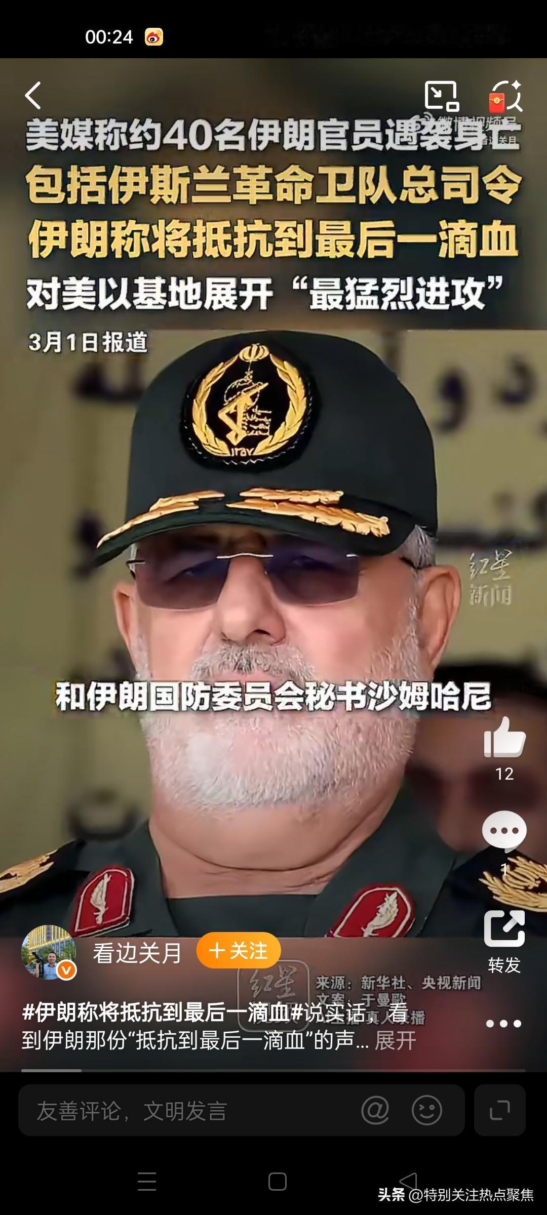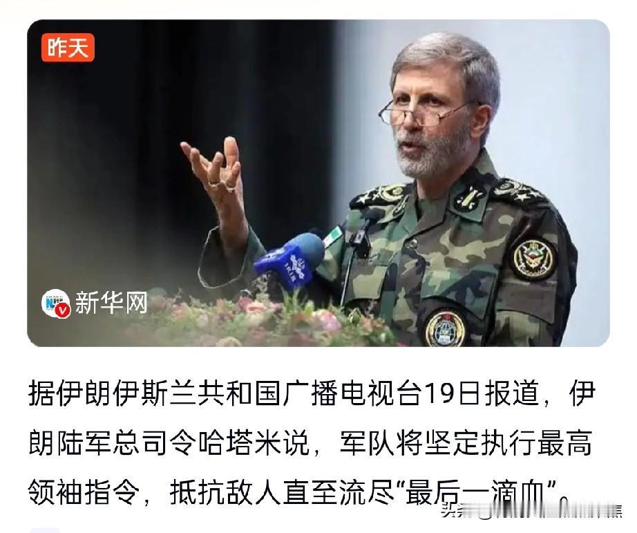 伊朗陆军总司令军队将坚决执行最高领袖指令,抵抗敌人直至流尽“最后一滴血”,誓死捍