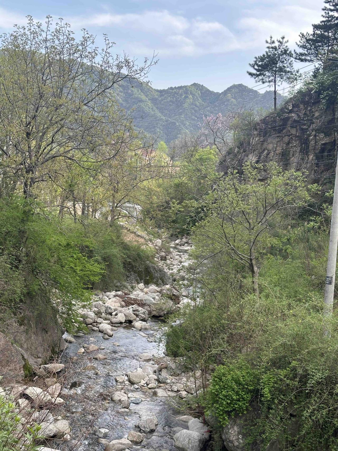 昨天周六,风和日丽,我和老伴上午回老家办完事,下午顺便开车去了趟王顺山,适逢周末,爬山的人还不少,有上山的也有下山的。王顺山位于蓝田县山里面,最高处的玉皇顶海拔2239米,游客要爬到山顶也费劲,尤其我和老伴这个年纪要爬到山顶更不容易。我十几年前,爬过一次王顺山,爬到千年杜鹃王树处,海拔2160米,也算不低了,上山用时三个多小时,我就爬过这么一次。今天来王顺山,已没有当年爬山顶的勇气了,真是岁月不饶人。在山里面明显空气清新,草木葱笼,山坡绿意盎然,山坡上还有各种野花灿烂绽放,煞为好看。河道里清澈的水哗哗向下流淌着,河道里还有一些大小石头,形状各异,与水相伴。我和老伴在山底下转了转,当转到一家房前菜地处,主家一位小伙,热情的非要给我割10元钱的韭菜,说他们的菜没打农药,是二茬韭菜,我就让割了5元钱的韭菜。随后,我和老伴在路边摊吃了玉米面鱼鱼、蓝田饸饹,顺便买了一袋10元的香椿,在城里同样斤量的香椿,需要20元钱,山里香椿相对来说还是便宜。我们在靠近公路处河道里玩了一会,就开车返程。