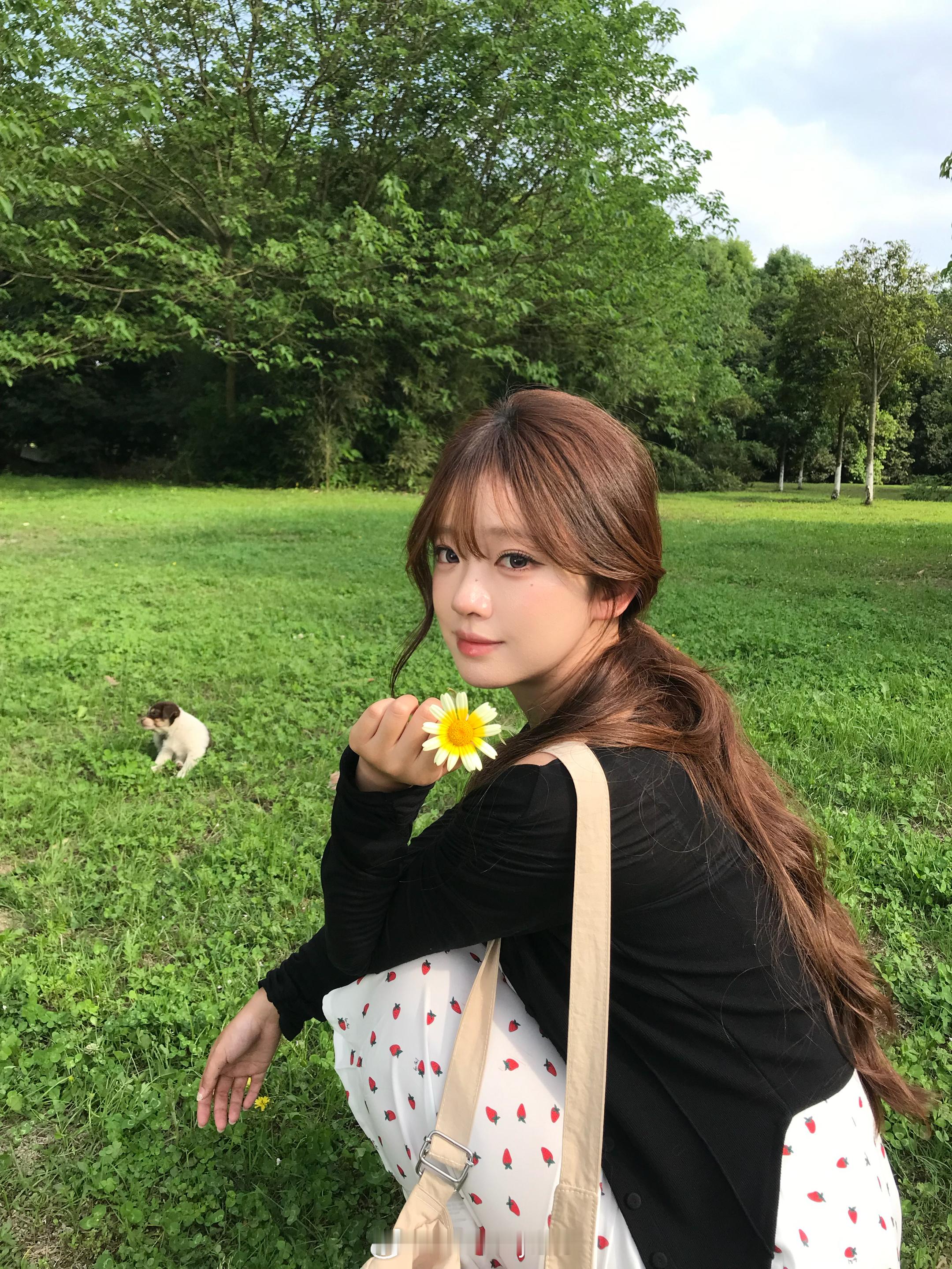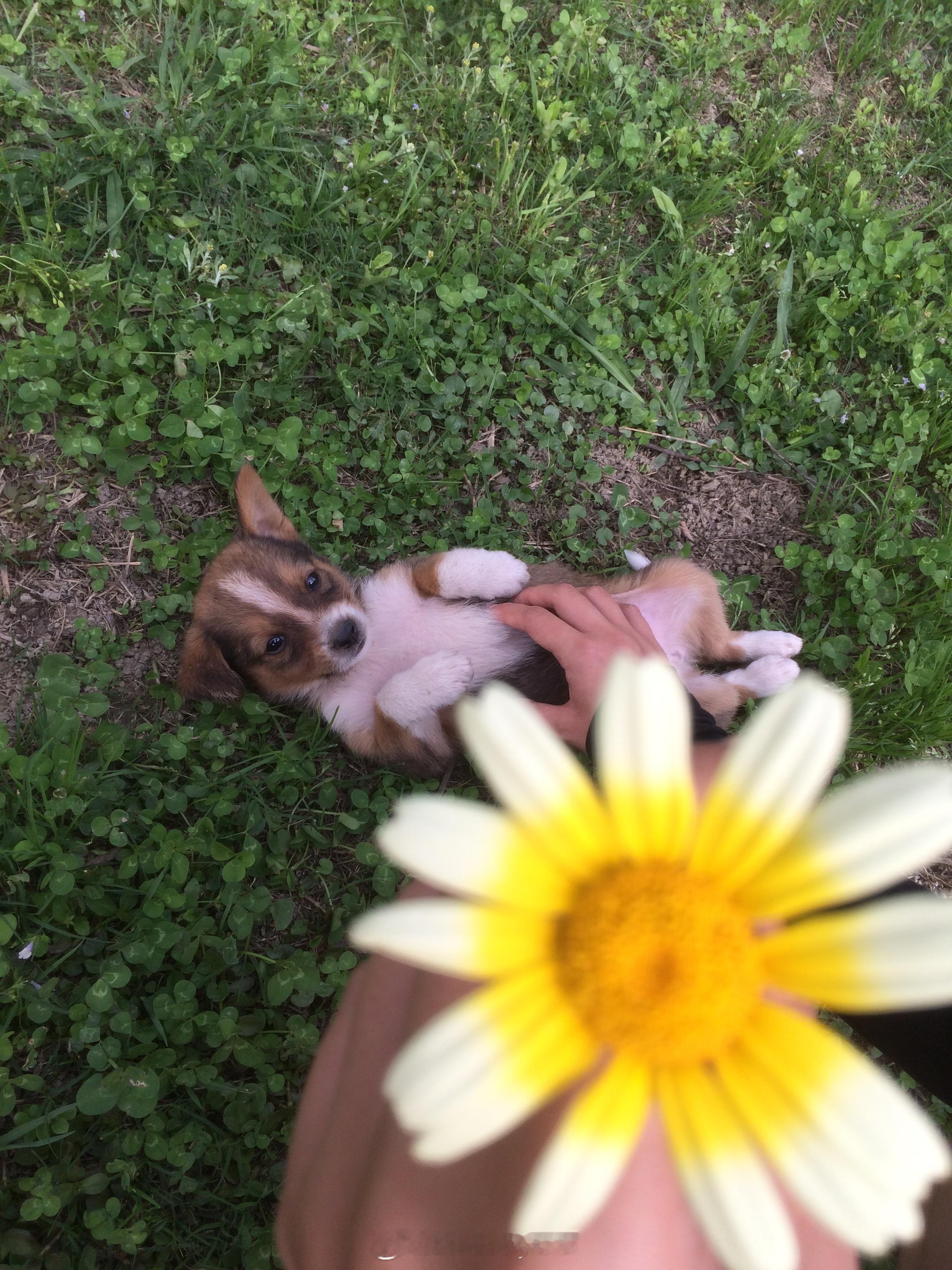 和周周出去拍照遇到了特别可爱的小奶狗 一直要摸摸哈哈哈