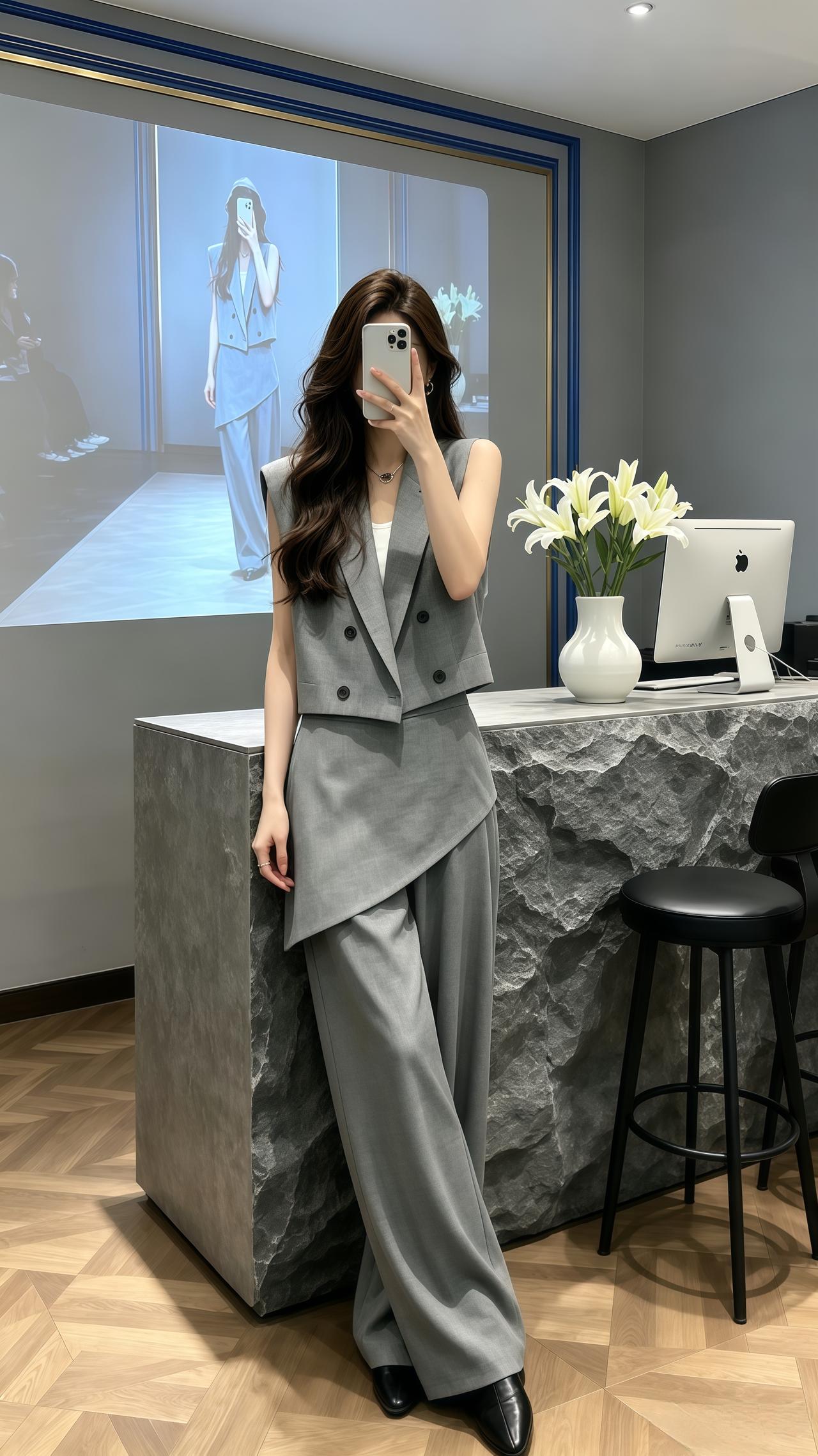 无袖设计感套装 高级灰西装套装 韩系穿搭高级感穿搭穿搭