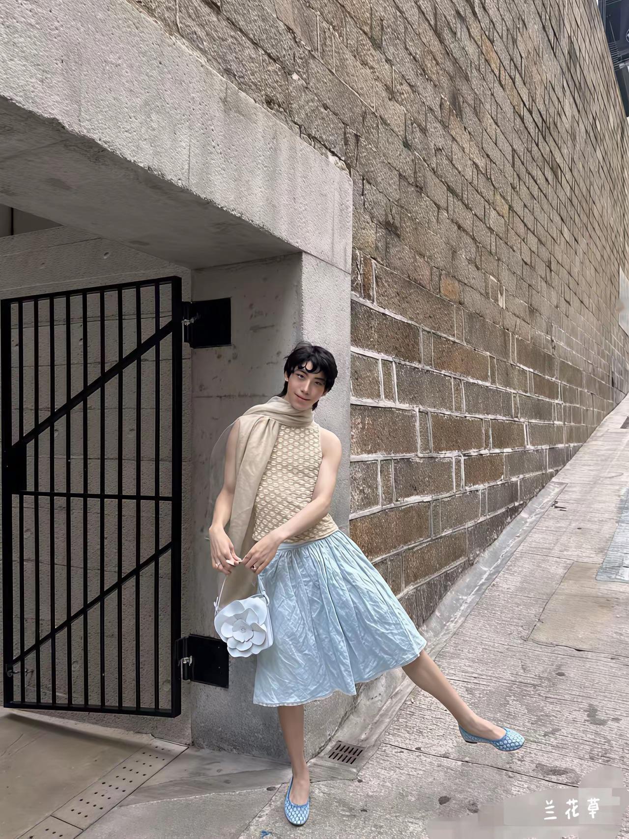 一个男孩子,全然女性化的打扮,看着就有点怪异。