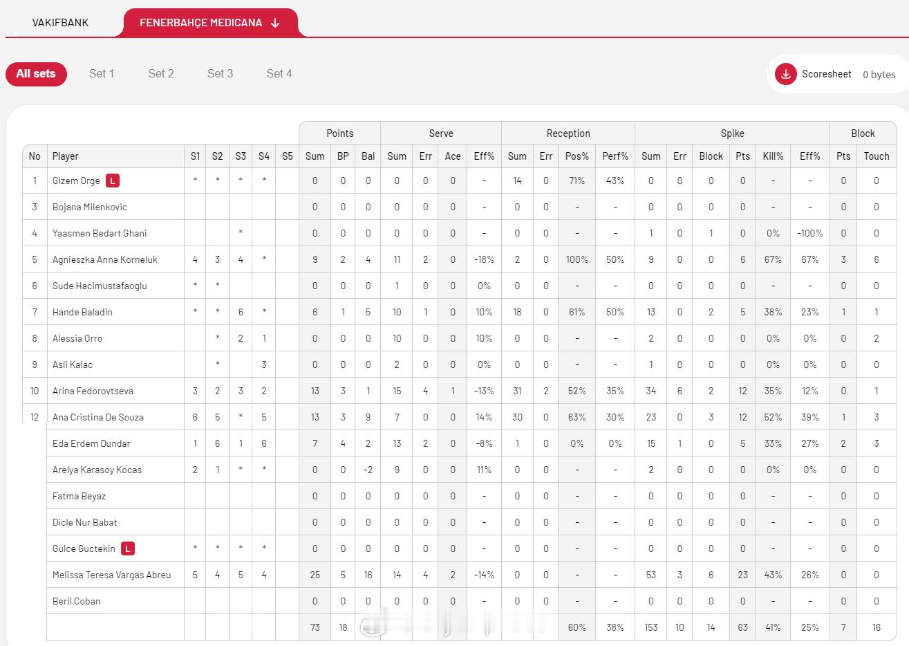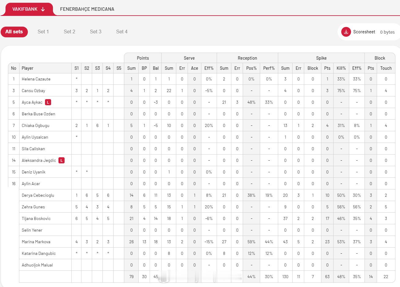 【瓦基弗3-1费内第14次登顶土超 马尔科娃26分MVP】国际排坛战报速递 4月19日伊斯坦布尔,土超女排决赛第五回合,瓦基弗银行主场3-1(23-25/29-27/25-20/25-19)力克费内巴切,以总比分3-2战胜对手成功卫冕,也是第14次夺得联赛冠军。马尔科娃26分当选MVP、博斯科维奇21分夺得征战土超11个赛季的首个冠军、塞贝西奥格鲁14分,巴尔加斯25分、费多罗夫采娃和克里斯蒂娜各13分。
