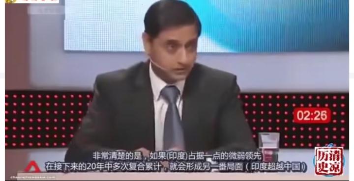 印度教授在节目中说印度已经从熟睡中醒来,三点原因会让印度在未来二十年迎头赶上并超越中国!一,复合累计20年的经济增长率稍微领先,才造成中国今日的领先,如果接下来20年印度也占据一点的微弱领先,就会形成印度超越中国!二,中国人口红利从2015年开始逐渐消失,后程乏力,相对的是,印度人口黄金机遇期会从2015年持续至2045年!三,中国经济增长模式是基于在基础设施上大量投资,也归功于来自其他国家的投资,同样的事情,印度现在也在做,许多中国资本未来也会在印度基础设施建设上投资!