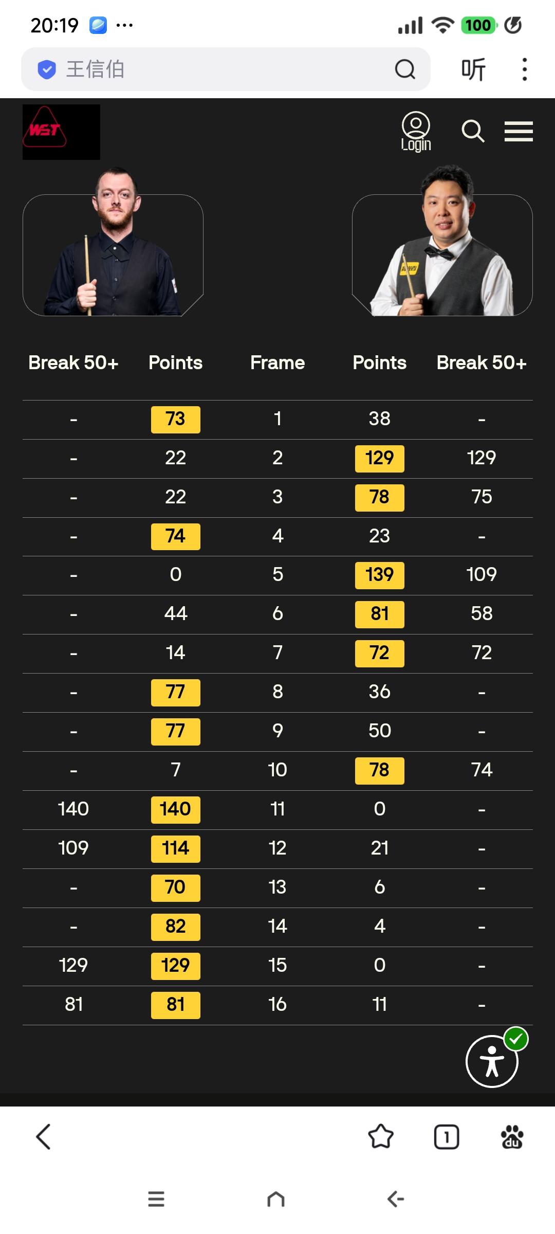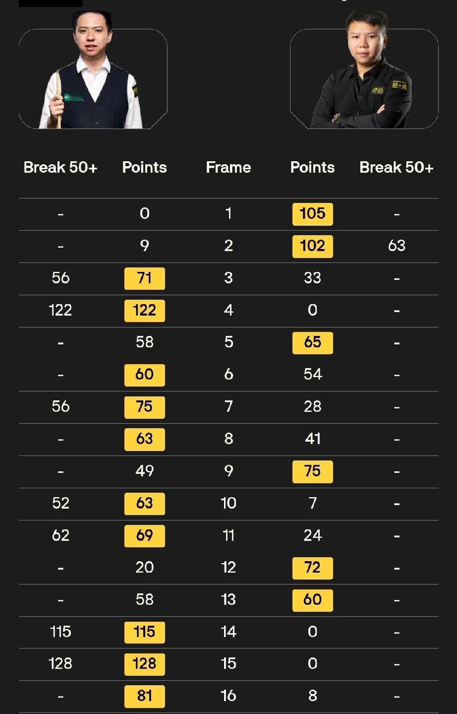 截至北京时间4月20日凌晨6点,斯诺克世锦赛中国球员战绩如下: