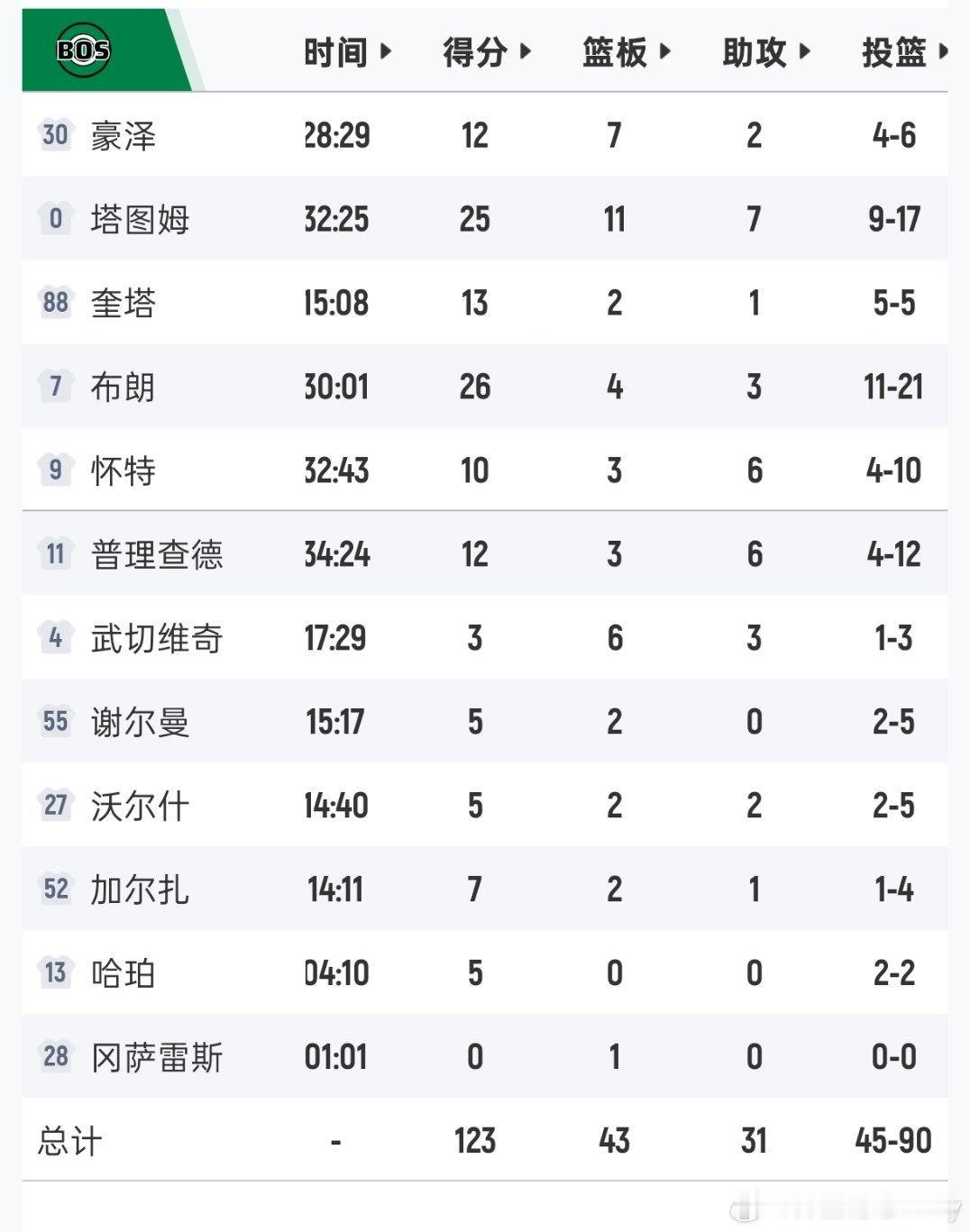 毫无悬念,凯尔特人123:91狂胜76人32分!拿下首战。系列赛1-0领先。