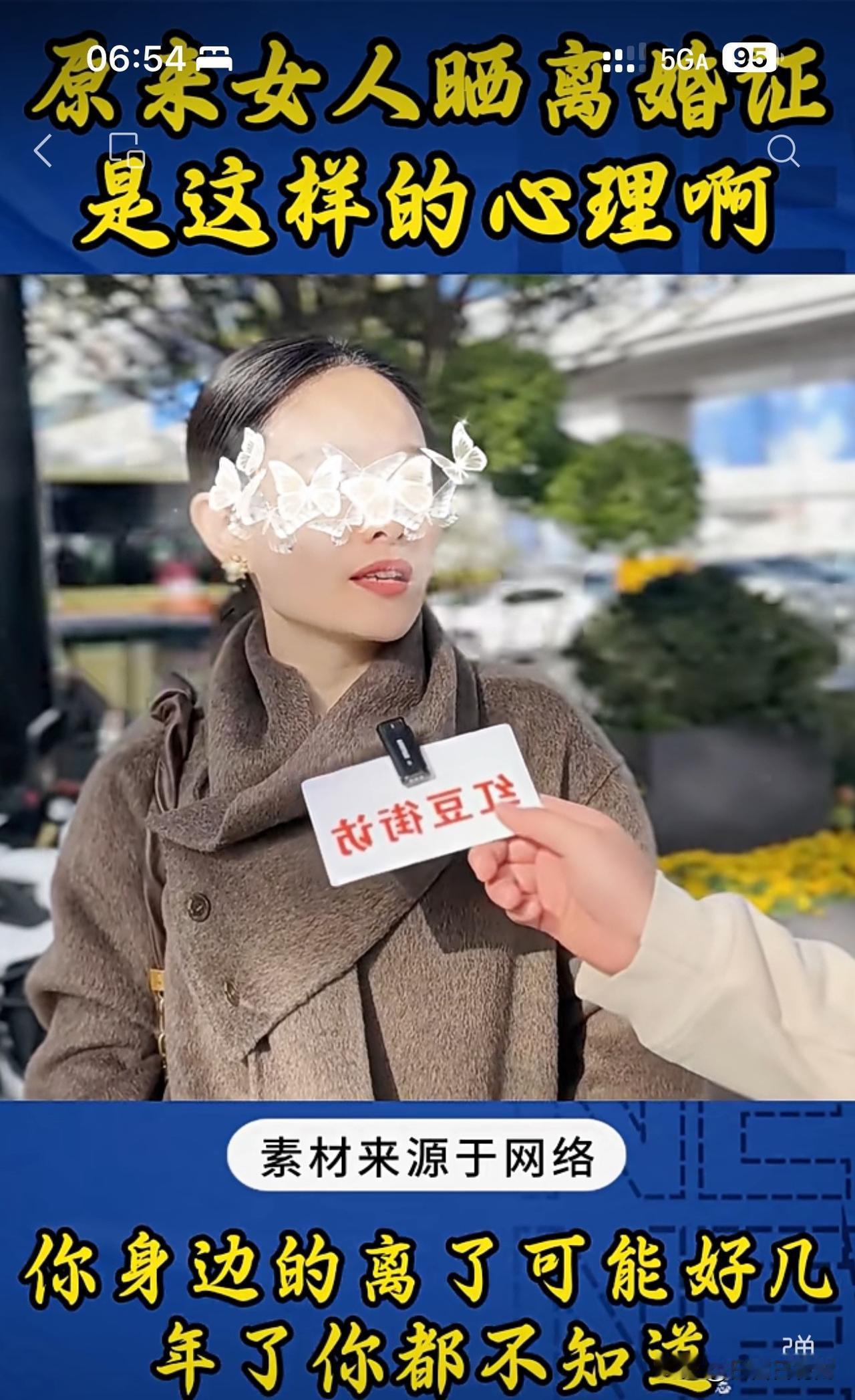 有一个女博主32岁离婚了,她把离婚证晒到网上,结果有一万多点赞,评论区都恭喜她脱离苦海。