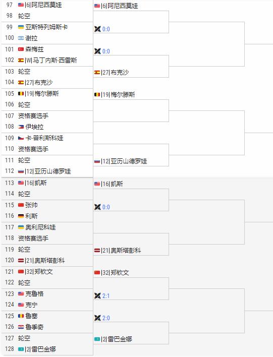 王欣瑜在上半区,郑钦文在下半区。