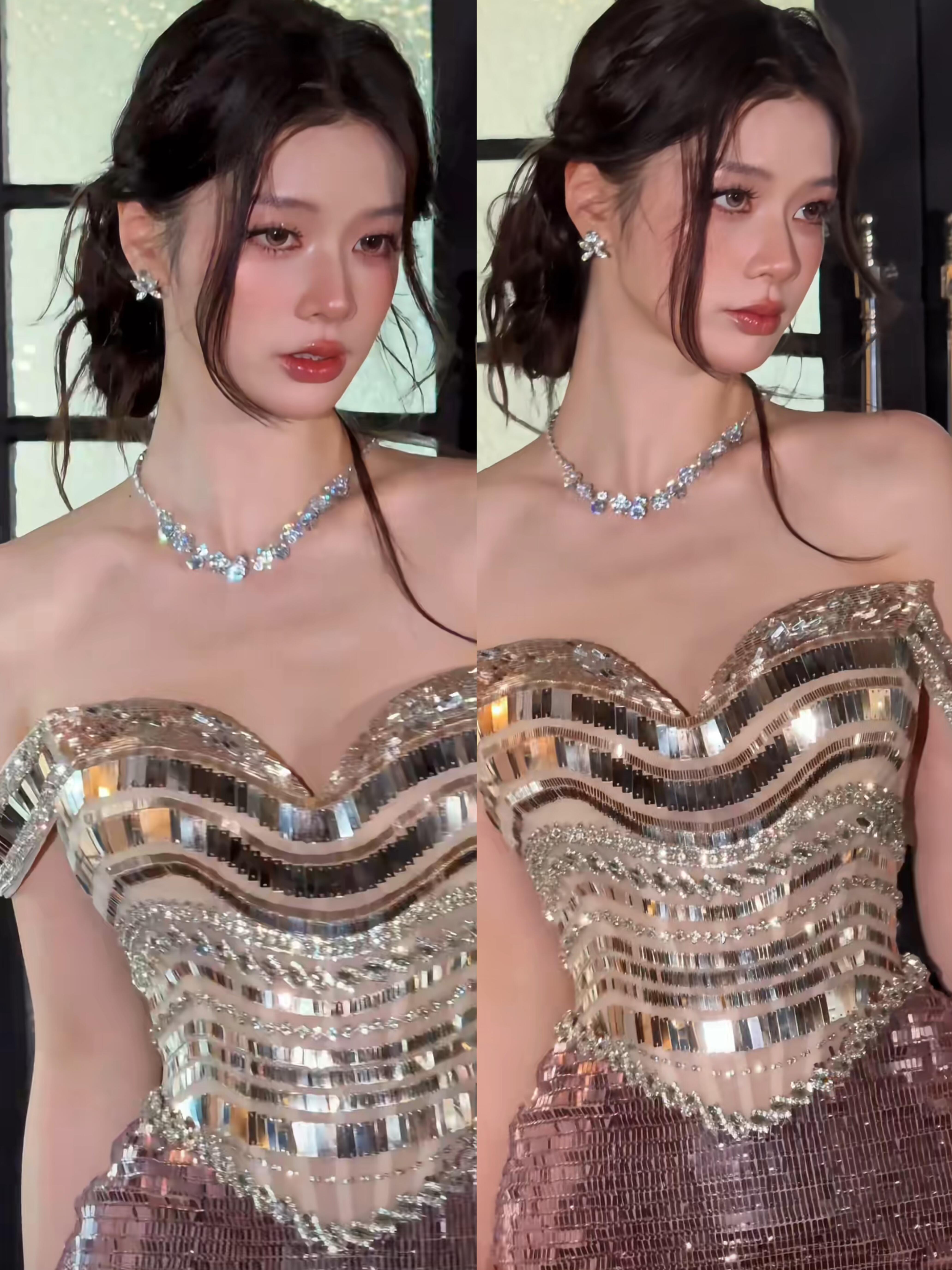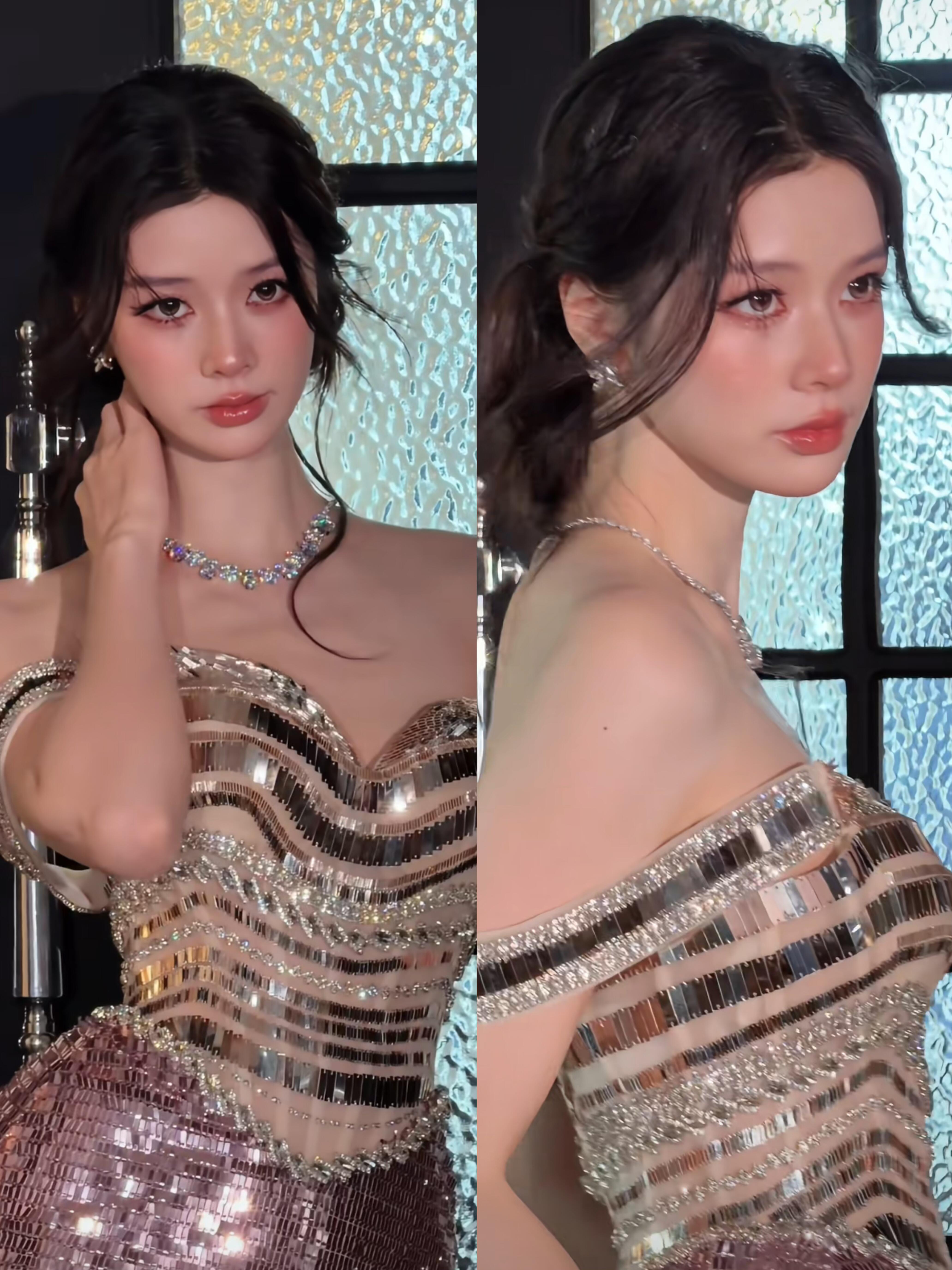 美女壁纸~白鹿,她在不同风格里解锁多样魅力:蓝调闪片礼服缀满星光,颈间珍珠衬出温