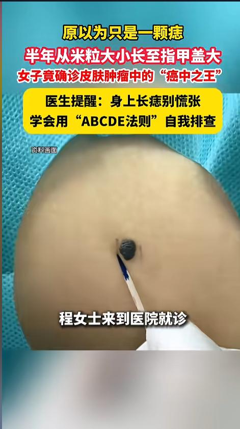 “别再当成痣了!”近日,湖北武汉,一女子半年前身上长了个黑点,只有米粒大小,她自