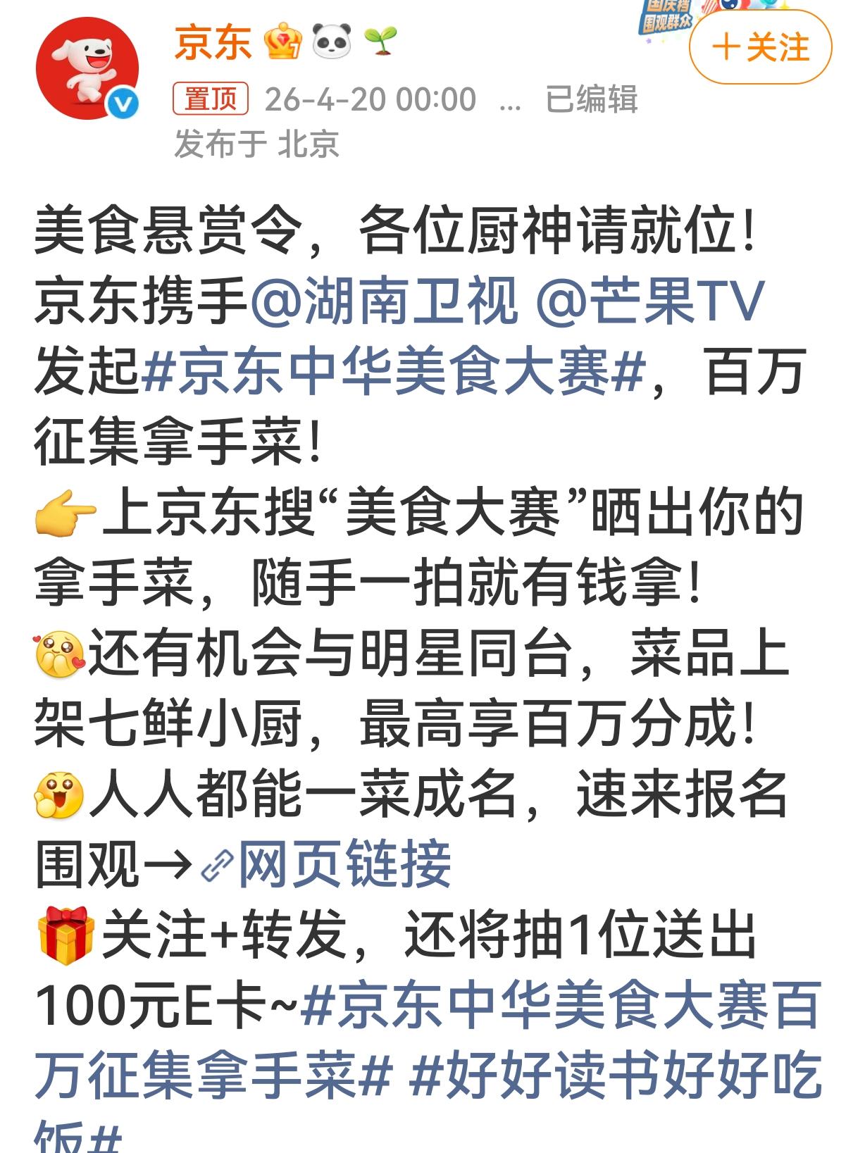 关注转发还能抽100元E卡,爱吃会做的朋友千万别错过,赶紧亮出你的看家好菜,下一个美食红人说不定就是你!