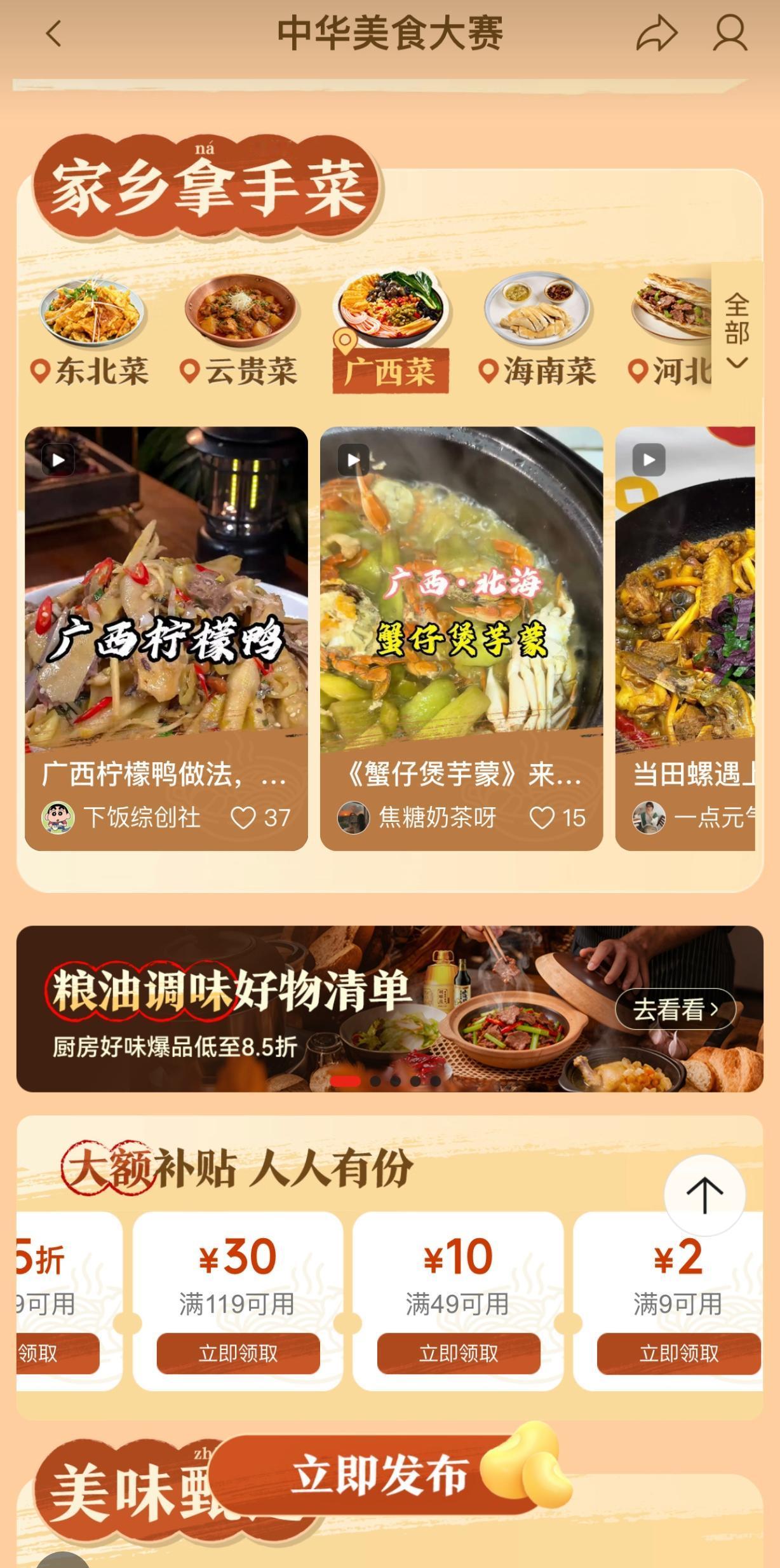京东联合湖南卫视、芒果TV发起美食大赛,面向全网征集拿手家常菜。不管是煎炸蒸煮,还是地方特色小吃,只要你对自己的菜品有信心,都能上京东搜“美食大赛”直接参赛。随手拍一道菜,就有机会拿现金奖励,优秀菜品还能上架七鲜小厨,最高可享百万分成,甚至能和明星同台亮相。