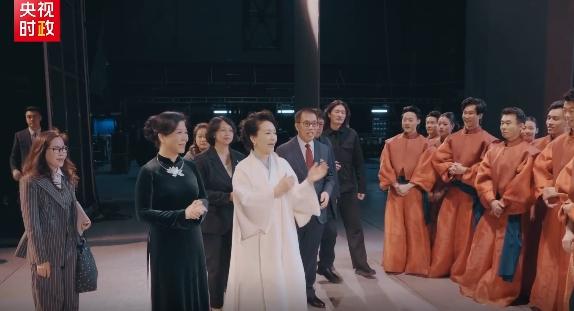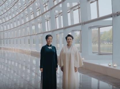这一回,陪同越共中央总书记、国家主席夫人吴芳璃参观中国国家大剧院的她,穿一袭简约大气的米白色国风裙装,外搭同色斗篷式长外套,尽显典雅风范!领口融入中式经典的斜襟设计,还特意叠加精巧的粉蓝色做点缀,既拉长上身线条又不失层次感,还与同色高跟鞋遥相呼应,走起路来知性高雅却不失意境,仪态气质太出众,真的好美!