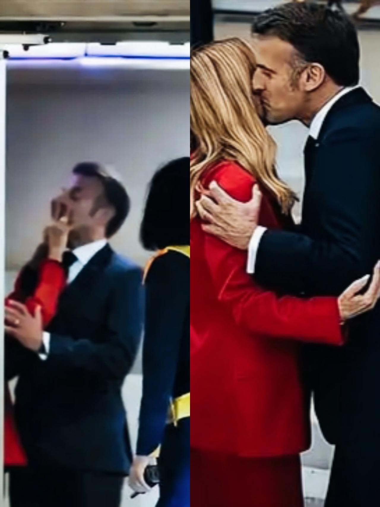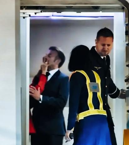 梅洛尼和布丽吉特都身着一身红色衣服,马克龙的心情却是完全不同啊!