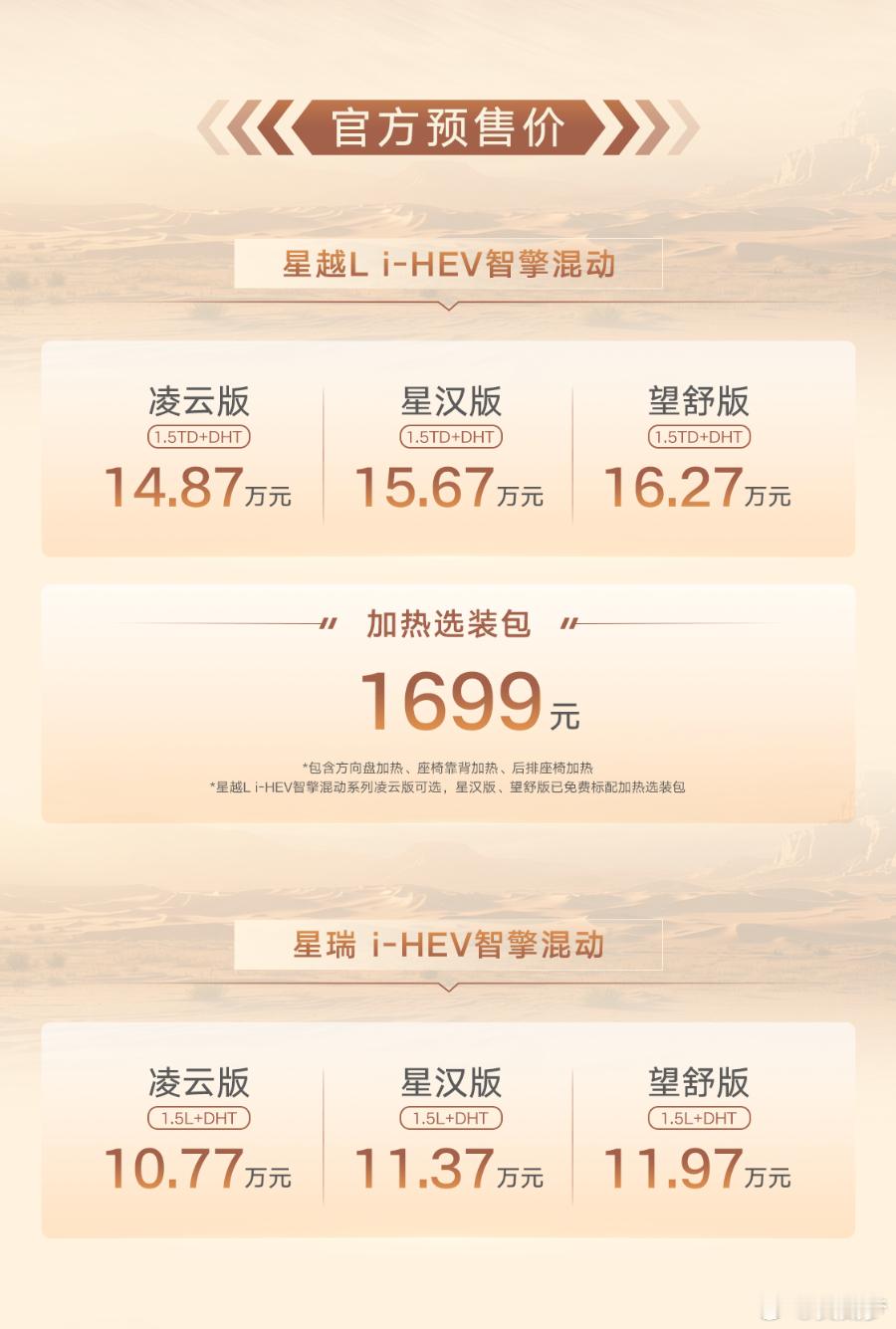 对了,预售价星瑞i-HEV 10.77万起,星越L i-HEV 14.87万起,这个价位段有这样的能耗表现,很香,而且在智能化上,又是一项优势。