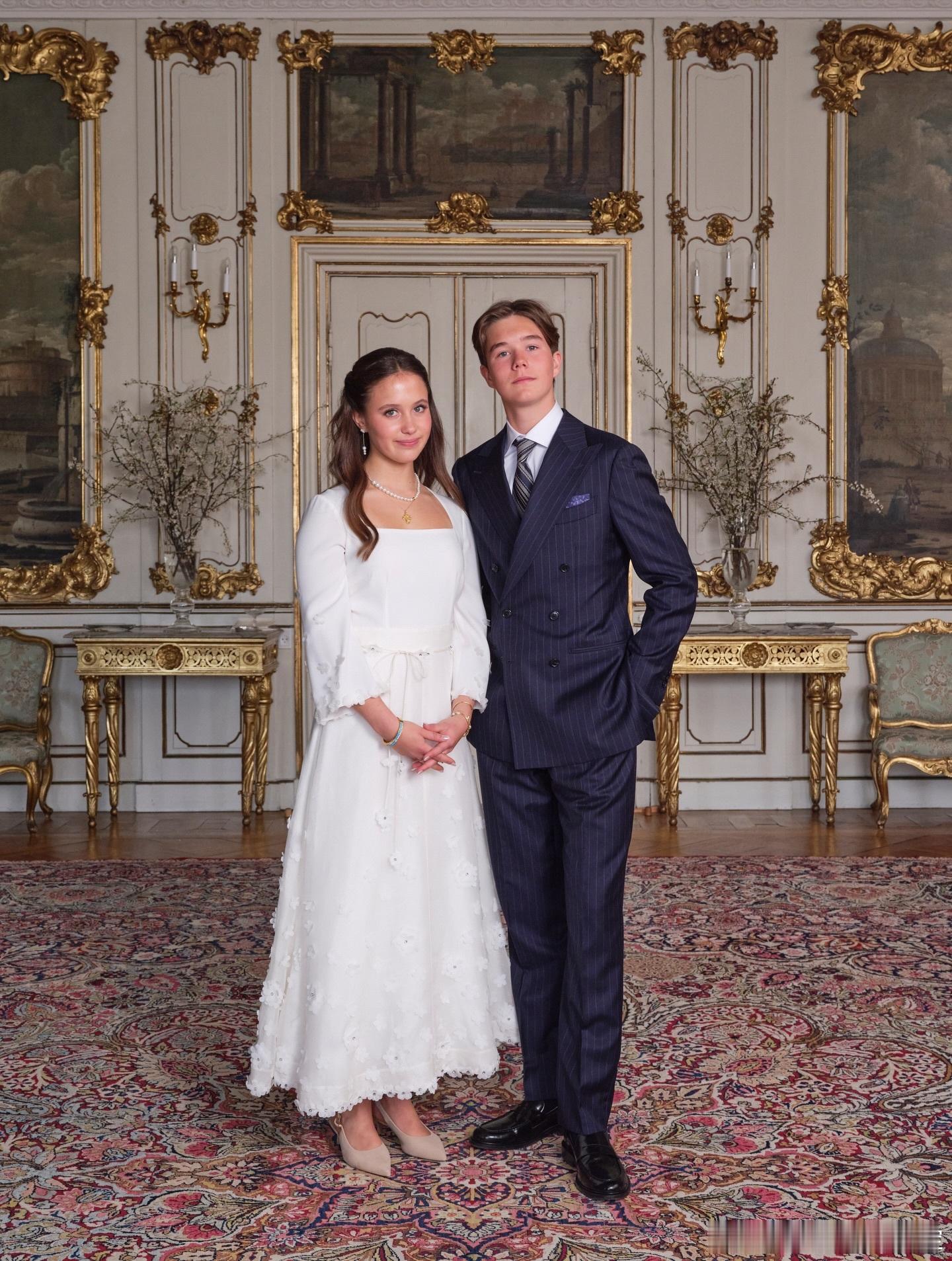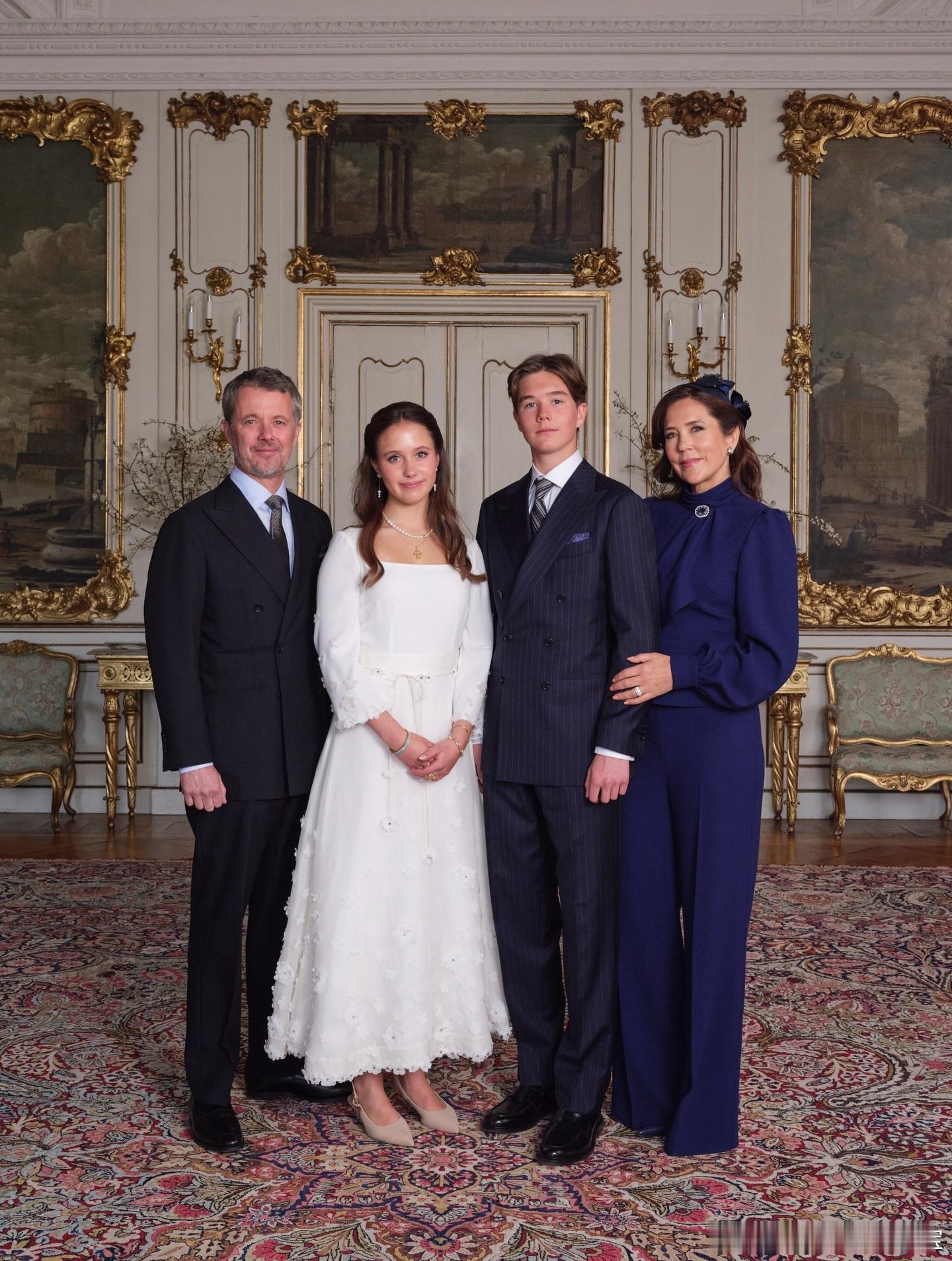 丹麦王室龙凤胎坚信礼最后一波官方照,看官方精剪视频应该也拍了跟教父母的合照,不造