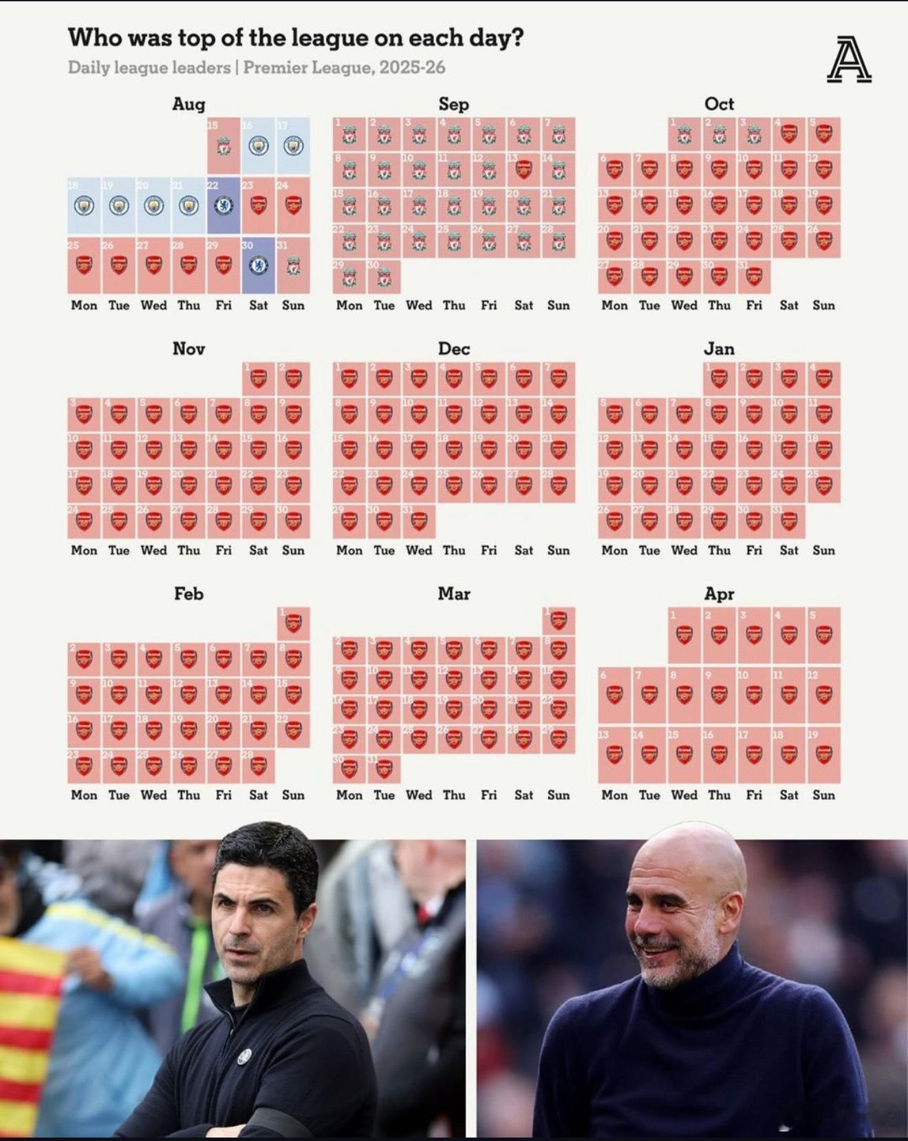 图七可以清楚看到本赛季阿森纳占据积分榜榜首的时间有多长。但在这一点上,英超和中超以及大多数联赛都差不多,前半段只要不掉队,下半段开始到最后的收尾才是决定排名的关键。