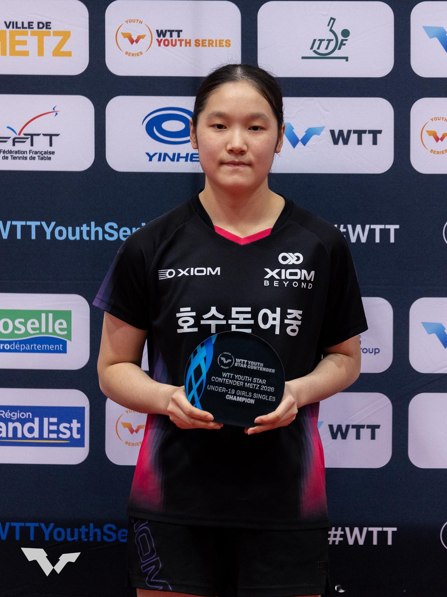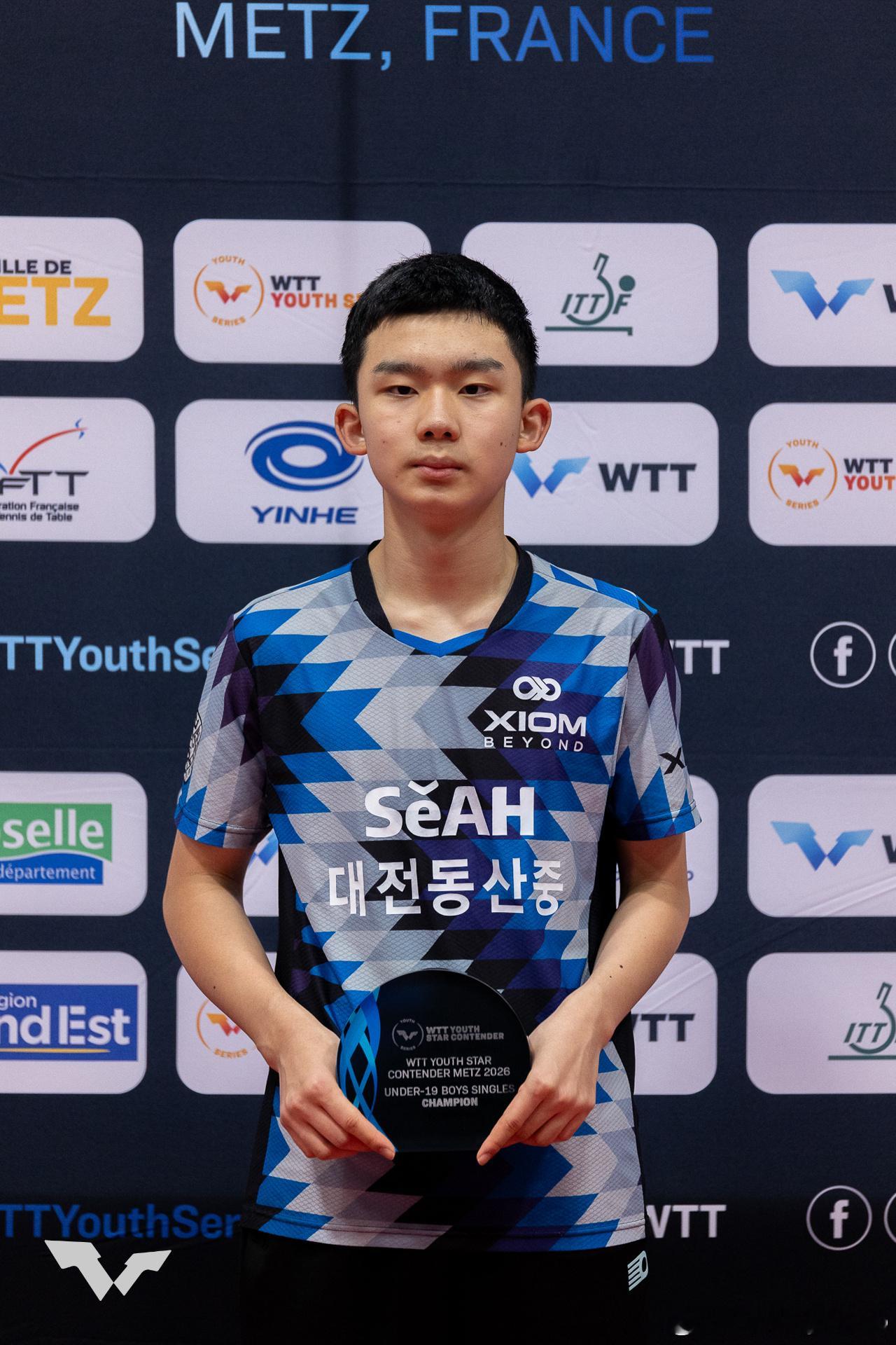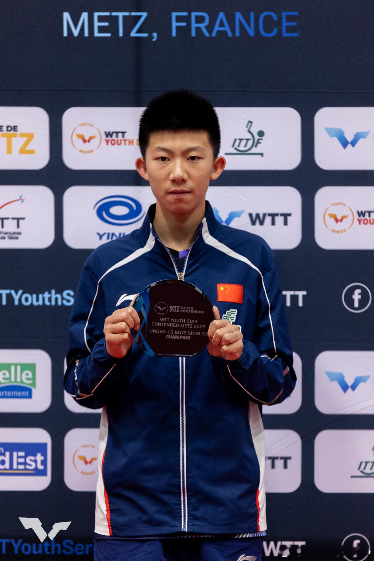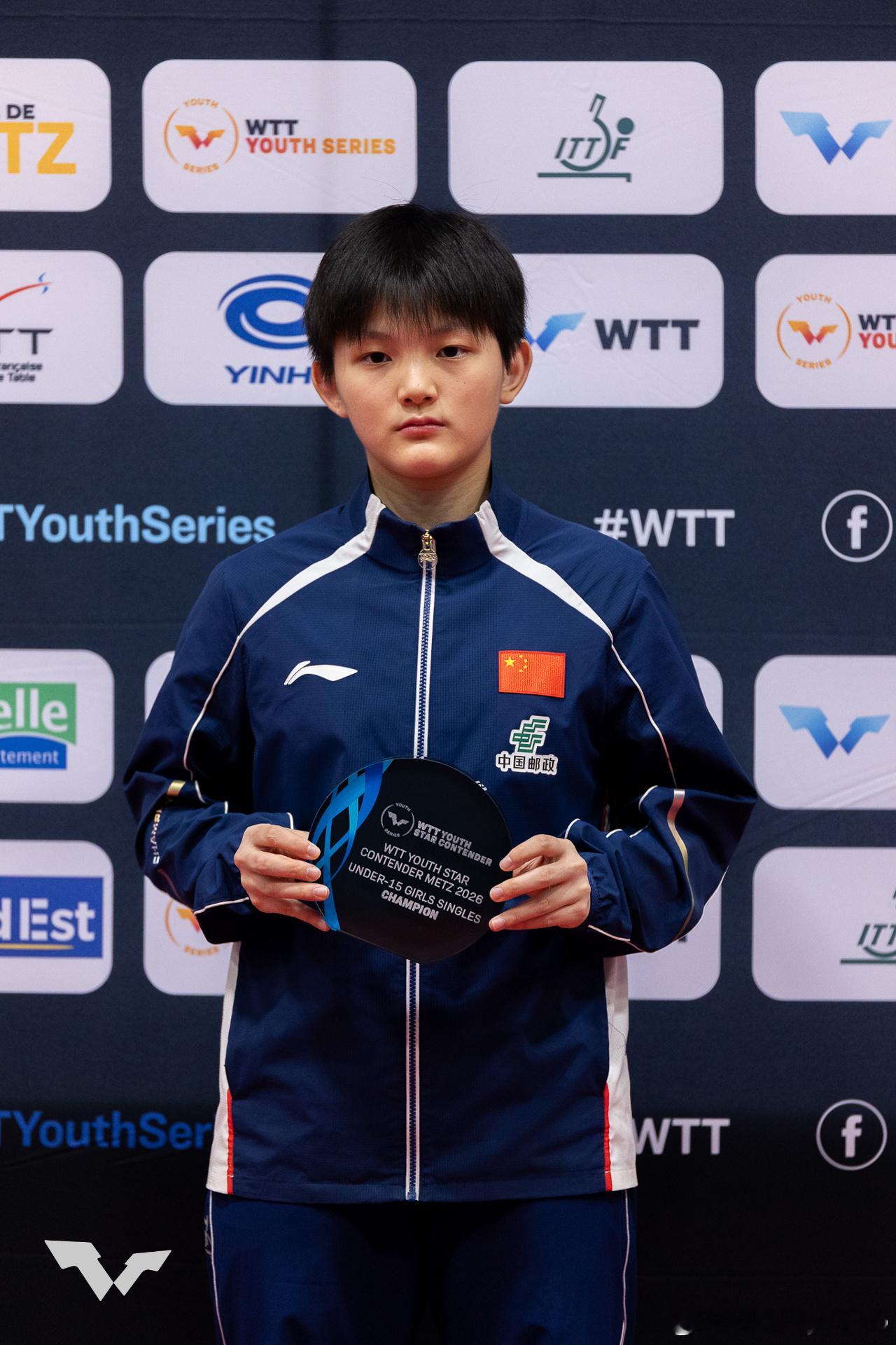 WTT青少年球星挑战赛梅斯站2026U15女单冠军:🇨🇳祝启慧🥇 亚军:🇨🇳孙笑薇🥈U15男单冠军:🇨🇳陈逸舟🥇 亚军:🇰🇷李承洙🥈U19女单冠军:🇰🇷李慧潾🥇 亚军:🇫🇷阿莱西亚·诺丁🥈U19男单冠军:🇰🇷李承洙🥇 亚军:🇨🇳李和宸🥈