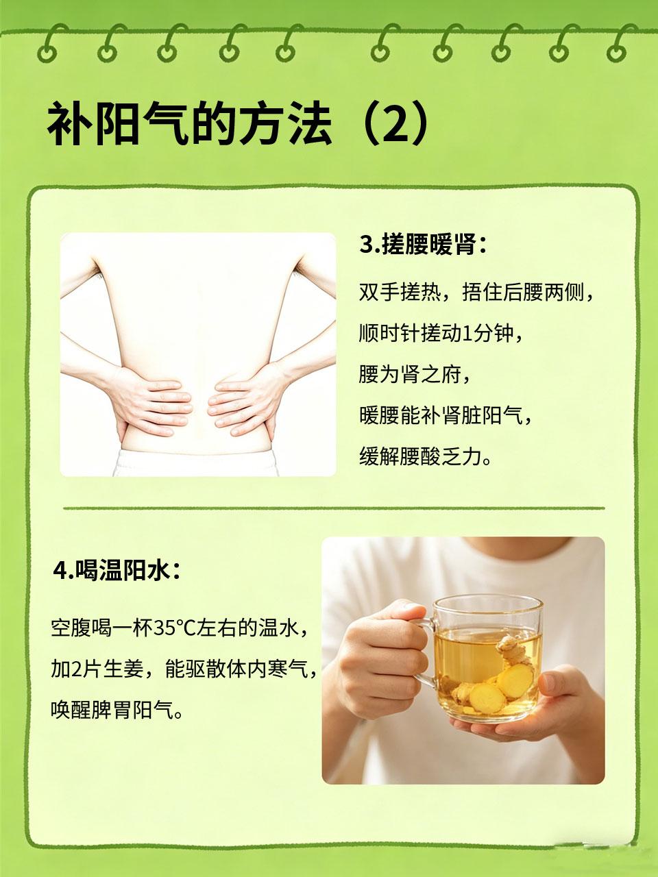 很多人明明没干啥,却总觉得浑身乏力、手脚冰凉😔,其实这是阳气不足的信号。阳气是人体的“发动机”⚙,一旦亏虚,气血运行变慢,疲惫感就会找上门。分享4个每天5分钟的小方法💃,轻松补阳气,告别疲惫感。