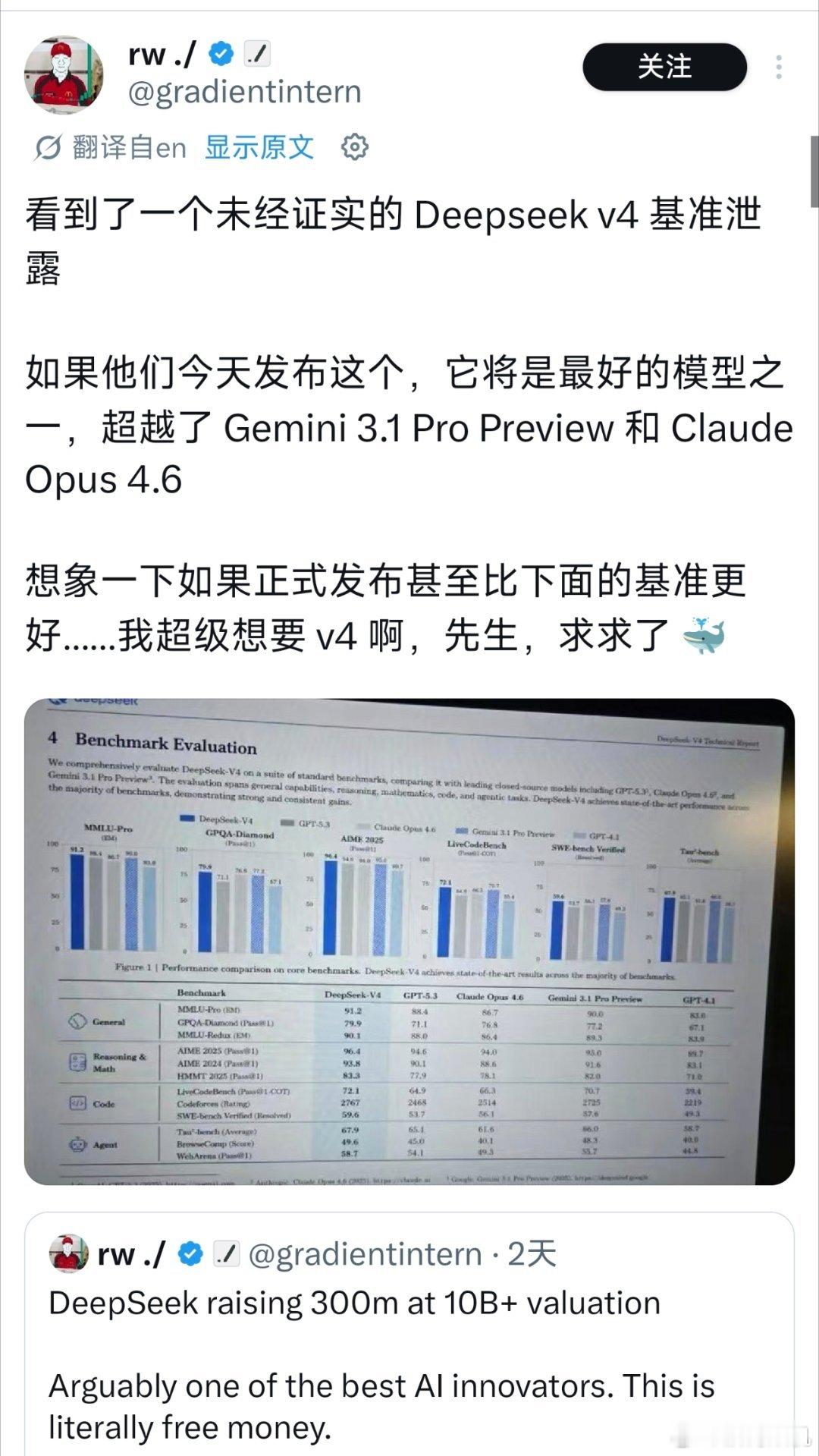 网传deepseek v4下周发布,可能会打破英伟达在cuda生态上的垄断。从一份泄露的基准测试来看,v4在所有项目中均取得了最高分...deepseekv4