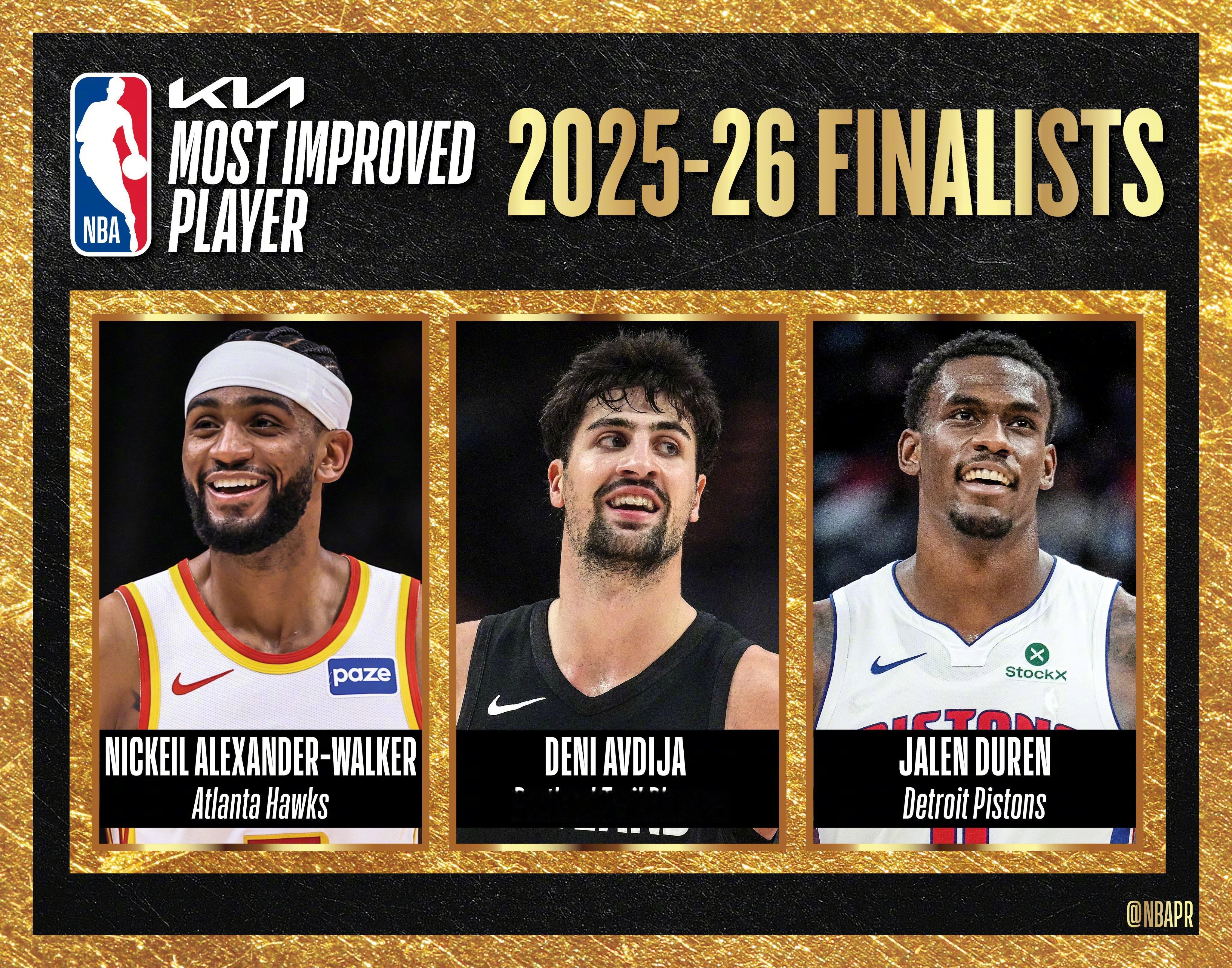 NBA公布MVP候选名单联盟公布了常规赛各奖项最终候选名单: