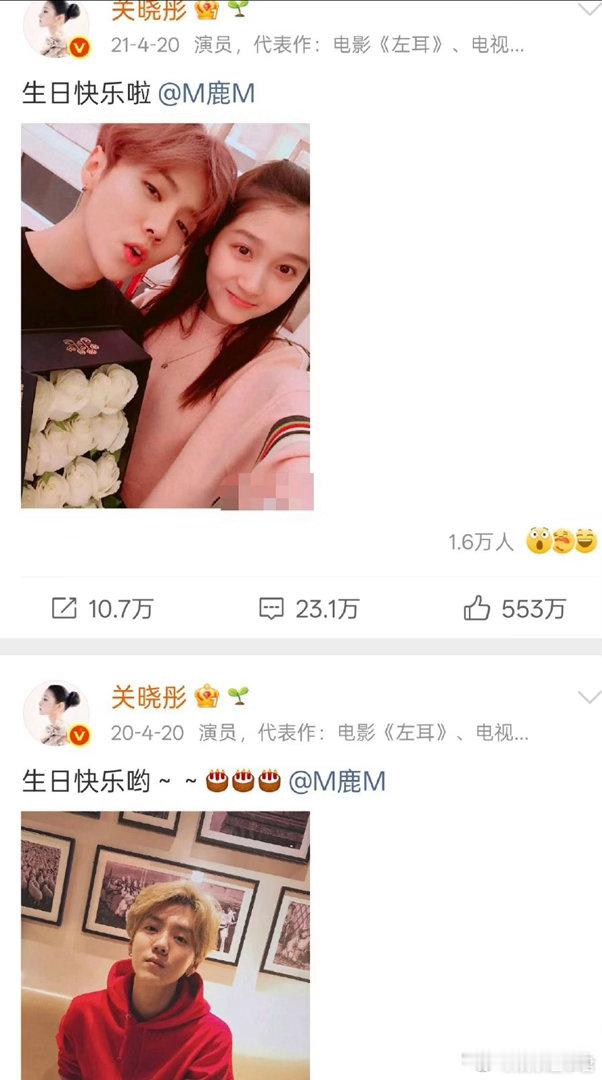 鹿晗 关晓彤2026年4月20日,鹿晗迎来36岁生日,演员关晓彤未延续此前零点发博为鹿晗庆生的惯例,这已是关晓彤连续两年未卡点为鹿晗送上生日祝福。