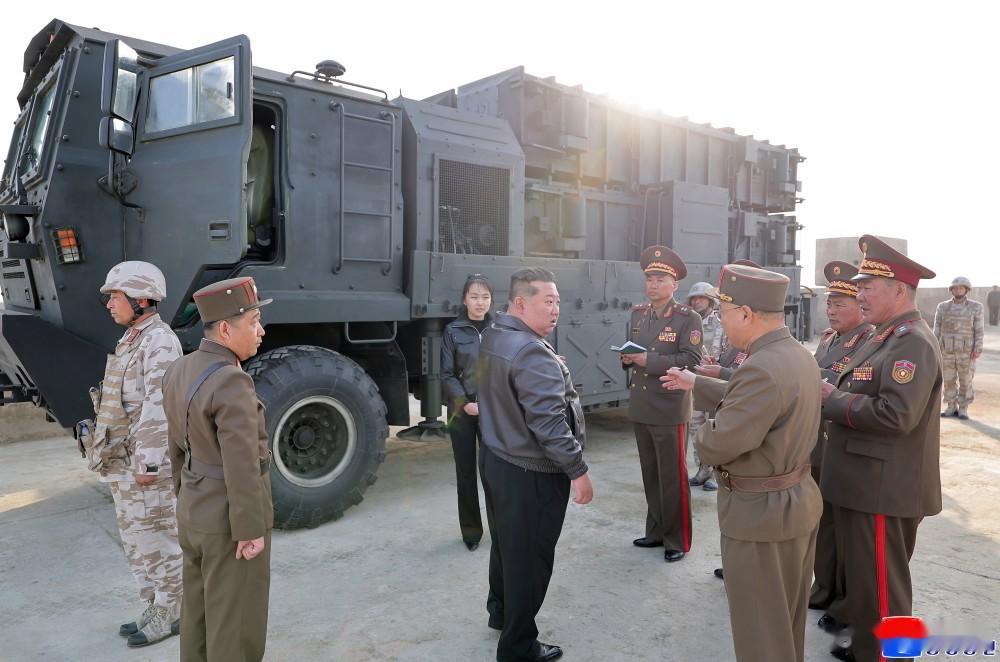 金正恩携爱女观看导弹试射。