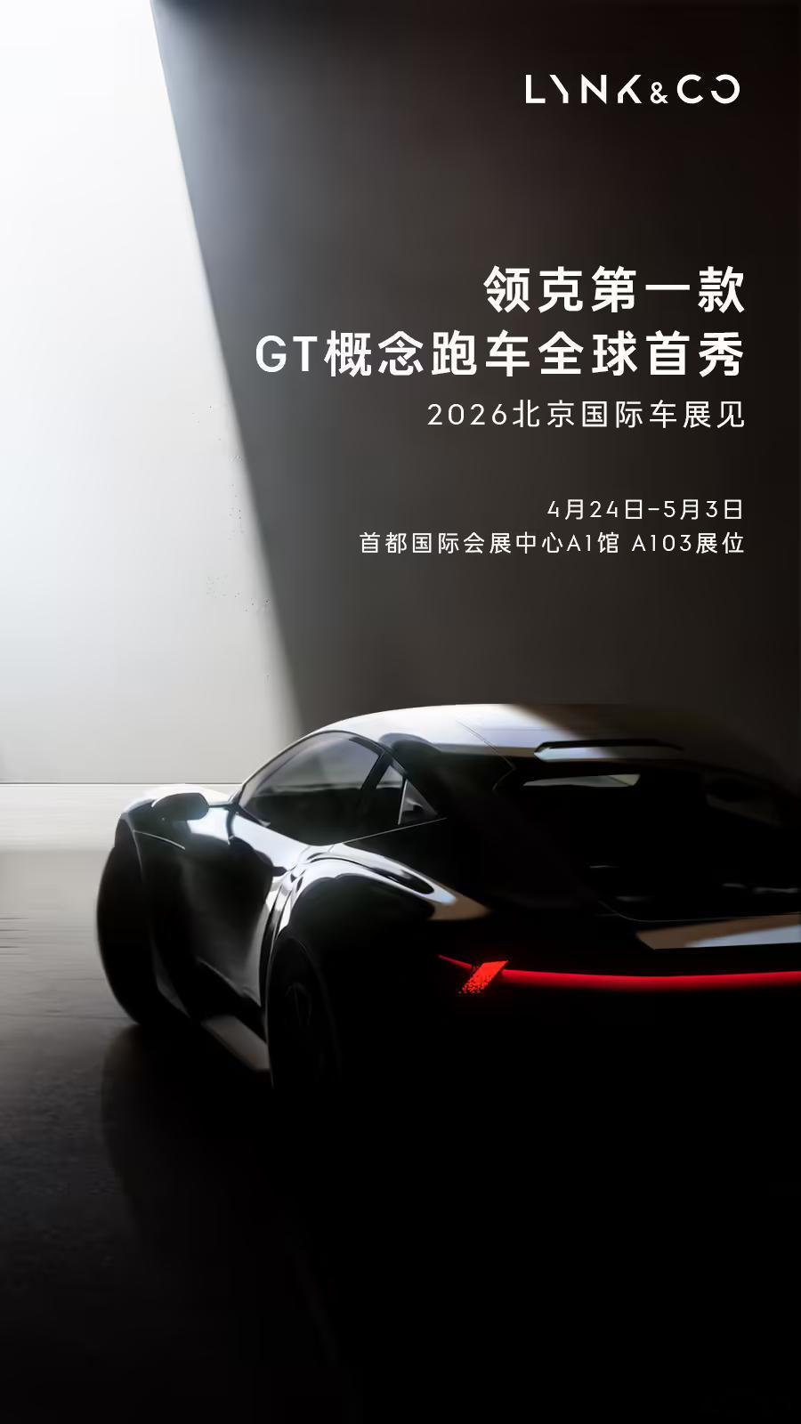 领克第一款GT概念跑车将在北京车展迎来全球首秀,预计搭载3.0T V6发动机,又一款必看车型2026北京车展